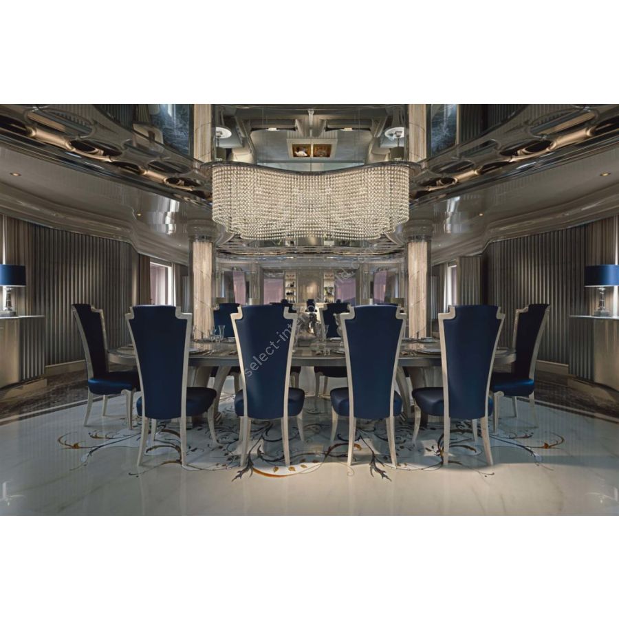 Chair with a unique and exclusive design, protagonist of a luxurious and refined elegance, fruit of the skilled work of master craftsmen who pass down the secrets of their craftsmanship from generation to generation. Its style represents a vision: the art of living through furniture and accessories in which design, style, material, new workmanship create new aesthetic codes.