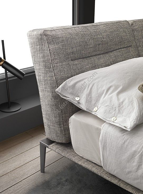 Contemporary design for Skip Bed, and minimal lines, with a feeling of lightness and energy. The elegant piping on the headboard cushions is an exclusive detail.