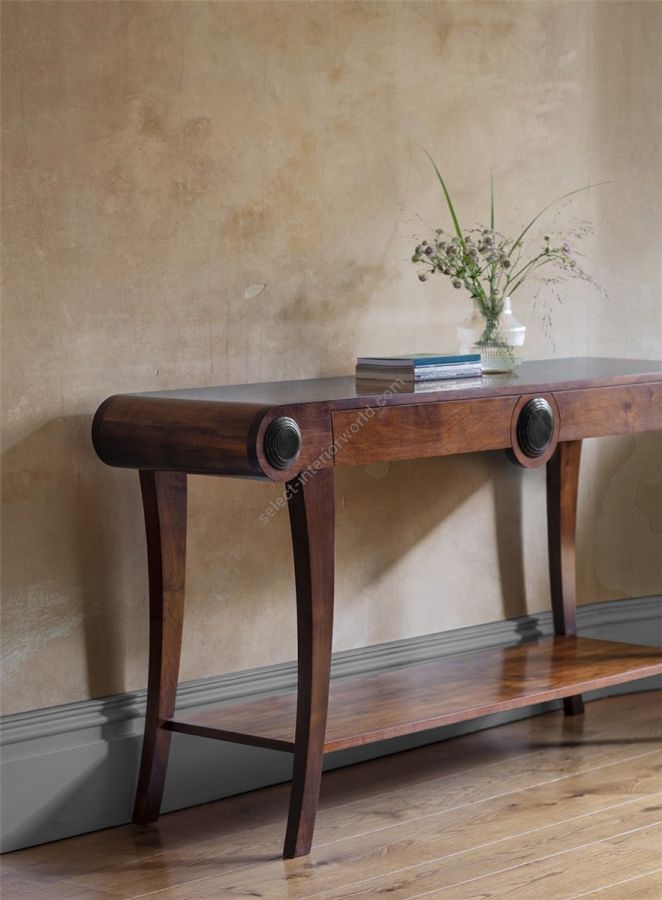 Crafted from solid walnut, the Art Deco inspired Duke console table is an example of fine English furniture at its very best. The graceful legs and exceptional finish deliver a statement piece for any setting.