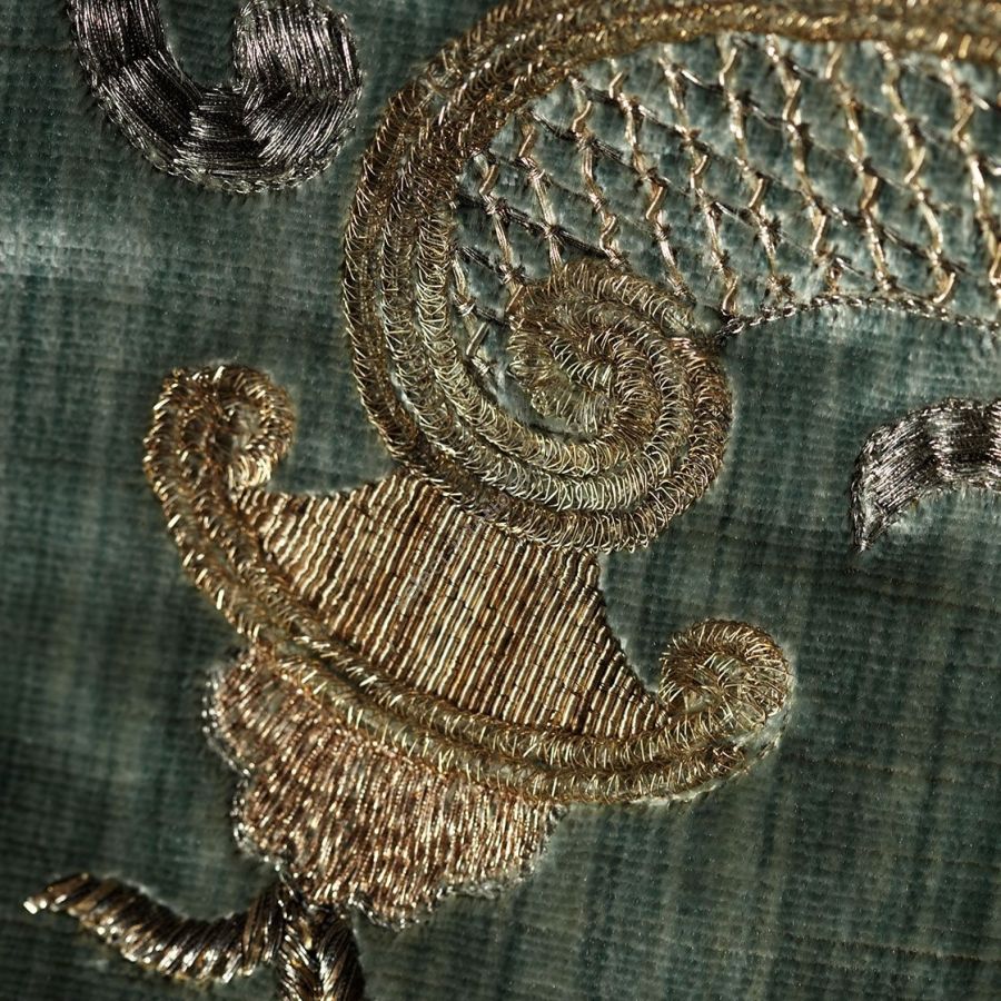 Our Couture fabrics are bespoke and hand embroidered to order. They can be created in fine gold or silver silk thread and embellished with freshwater pearls and semi-precious stones. Each pattern can be coloured and designed to fit your needs. We can embroider onto any background fabric including: silk, velvet, organza and leather.
