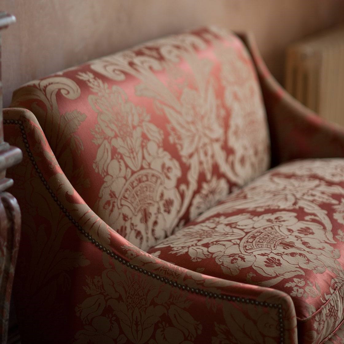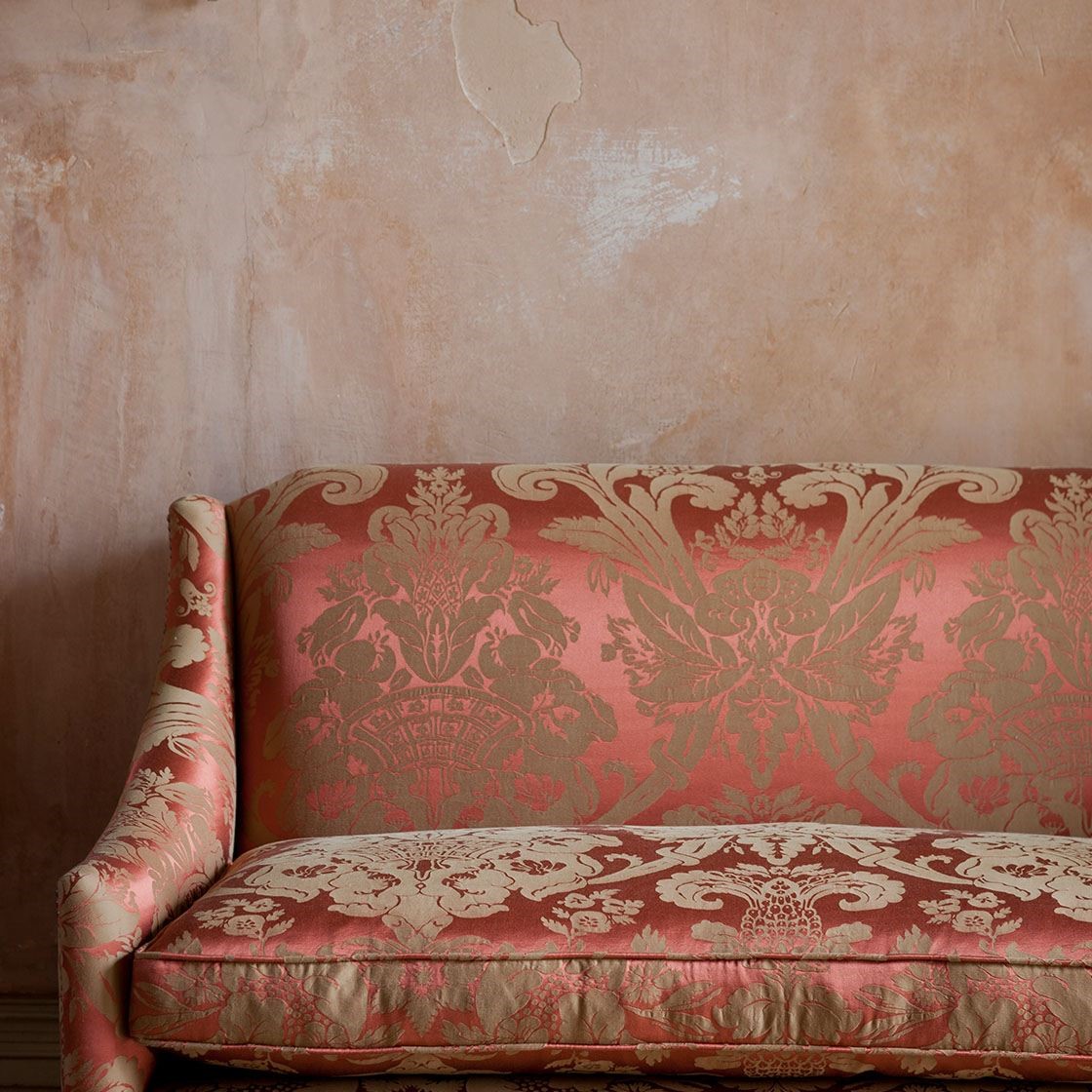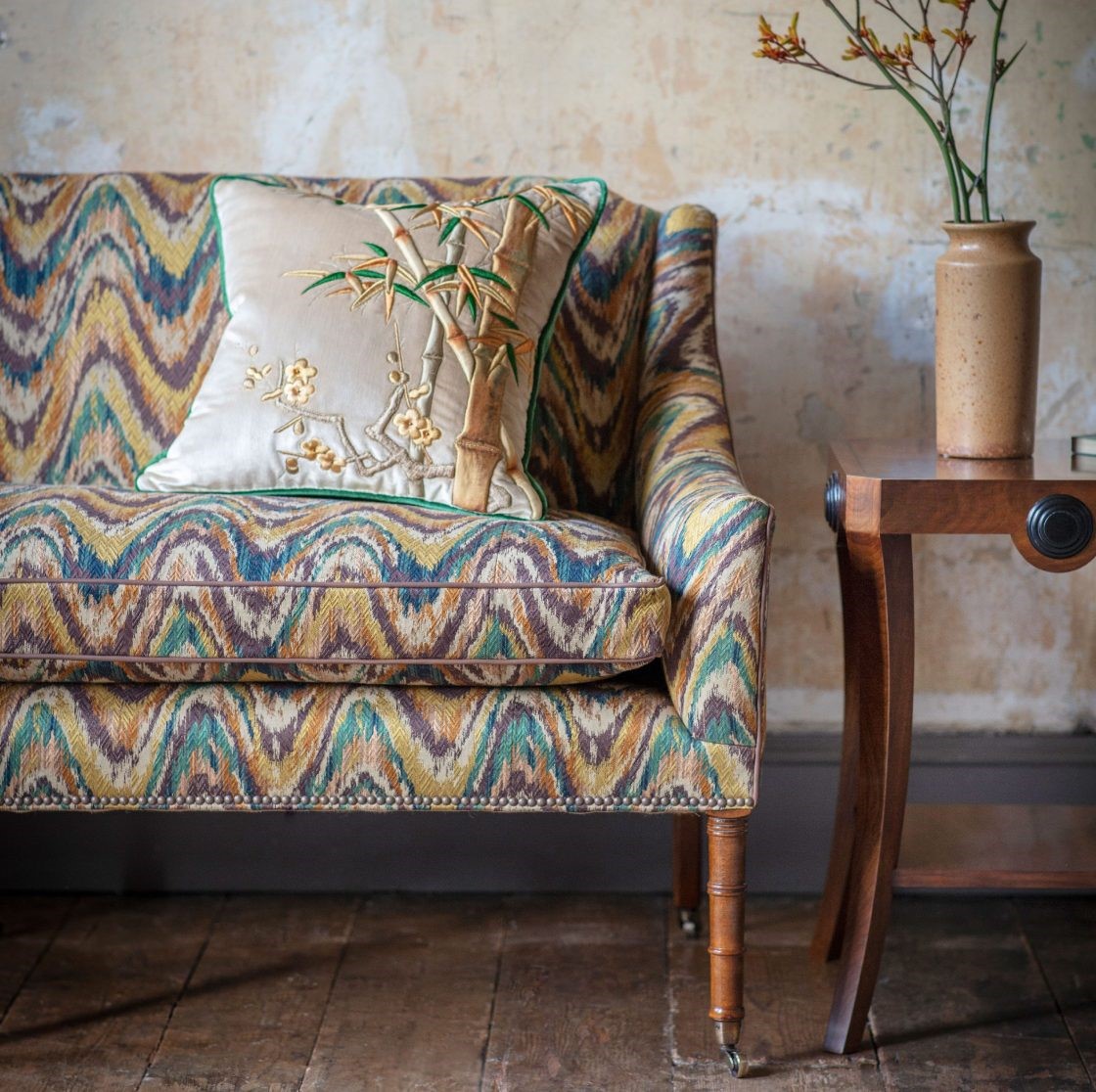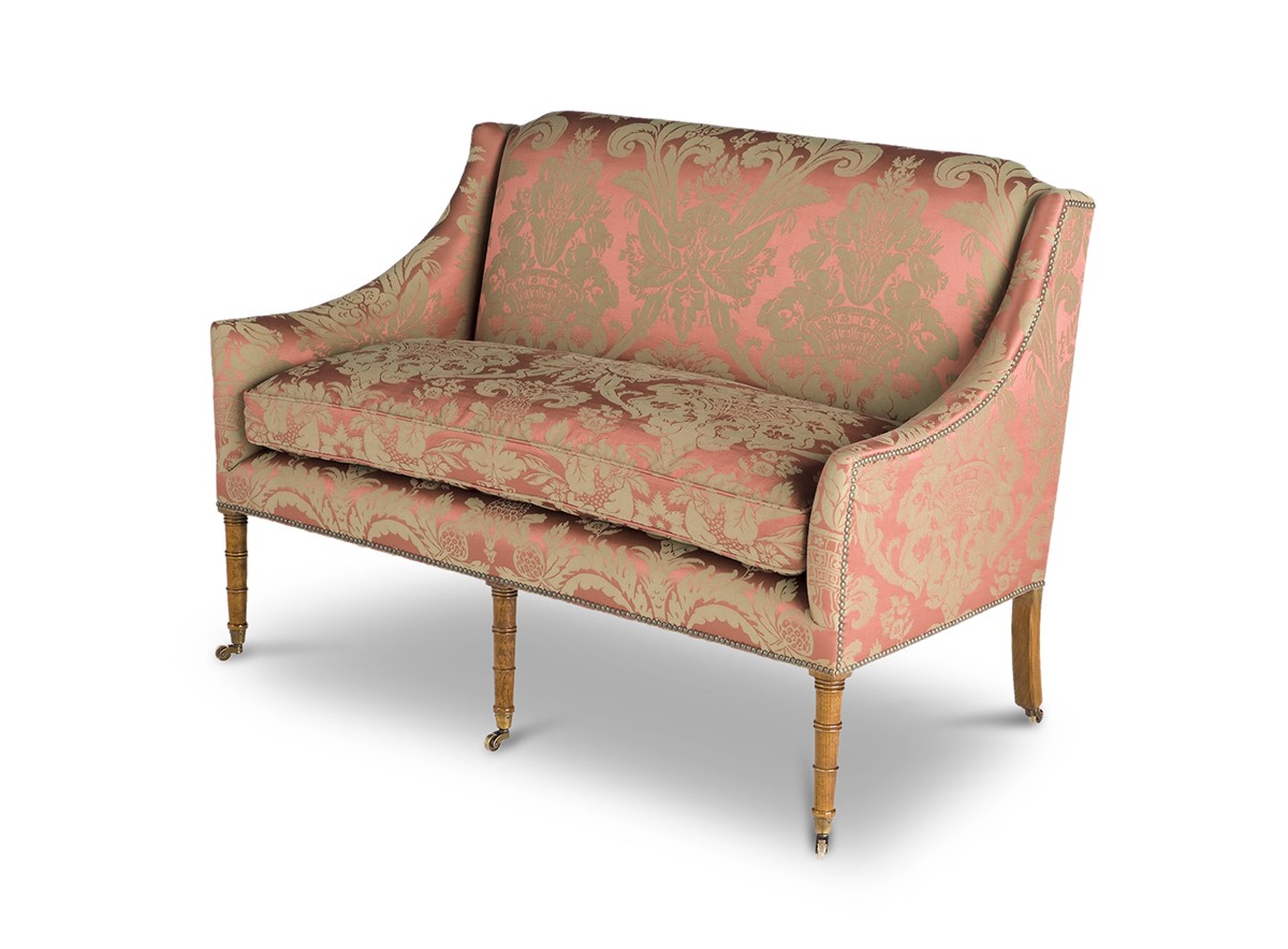The versatile Alexandra sofa has perfect classical proportions and turned faux-bamboo legs inspired by the late Georgian fashion for chinoiserie. Also available as a chair.