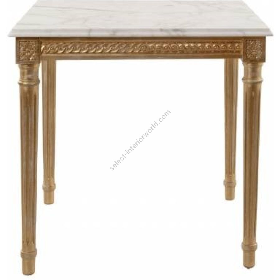 This Louis XVI-style side table embodies timeless elegance with its luxurious Calacatta Gold marble top and finely carved wooden base. The OR5 brushed gold leaf finish, complemented by a white meringue base, enhances its regal charm, making it a sophisticated accent piece for any interior. Designed with exquisite craftsmanship, this side table blends classical refinement with artistic detailing, ideal for both traditional and contemporary settings.
