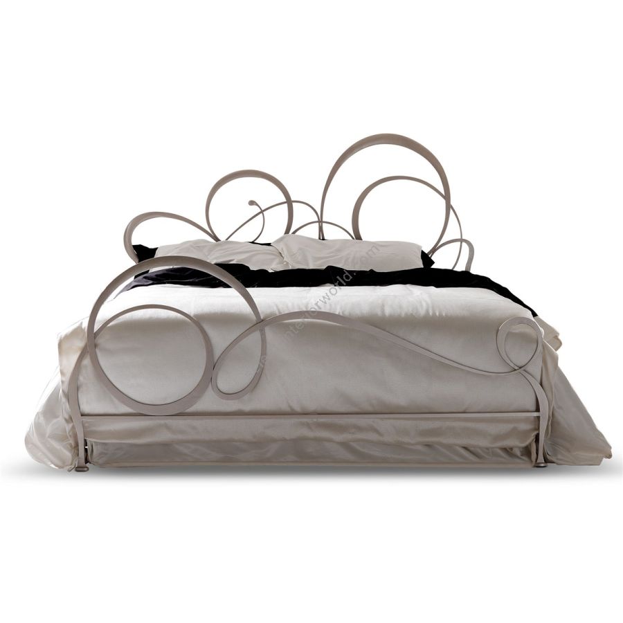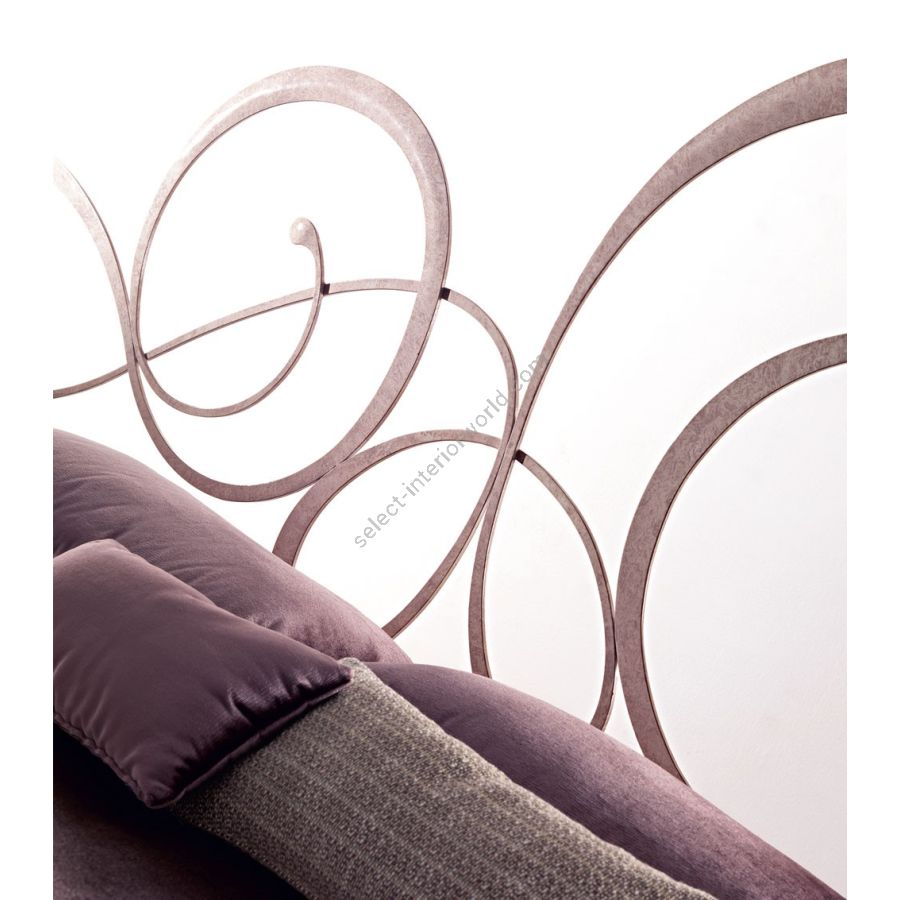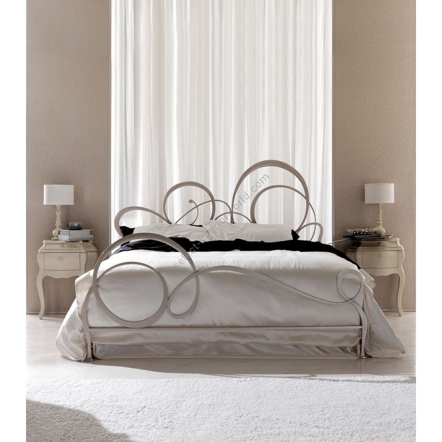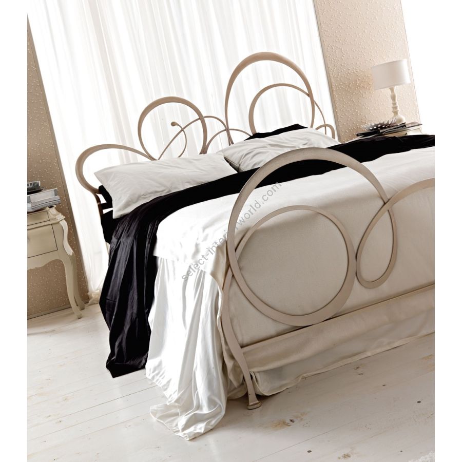 Hand polished laser cutted iron bed, with a young and lively line. The asymmetric shape characterizing the bedhead draw, makes Bizet a bed to admire, the focus of everyone attention once entering the bedroom. Elegance and functionality but also original shapes. The bedis available also without bedfoot and with padded bedrail and decorated wooden legs.