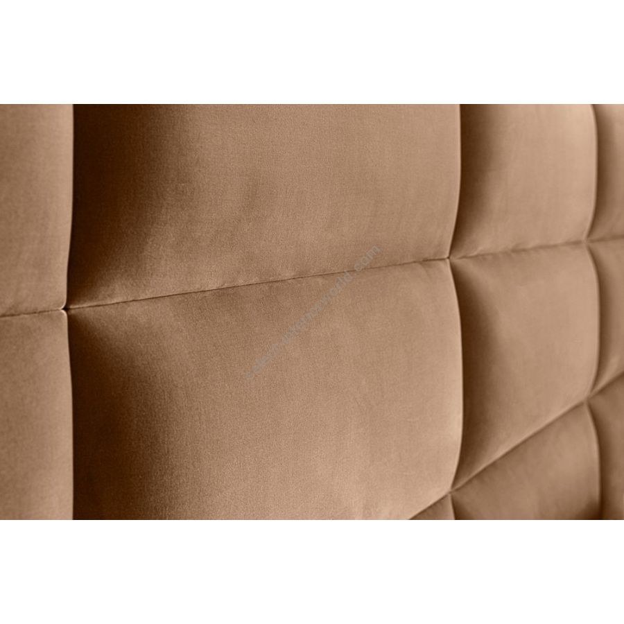 The upholstered headboard or boiserie, and the box spring base, on which the mattress lies, are available in a wide range of fabrics.