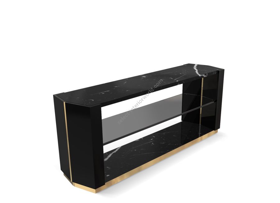 The Beyond Long Side Table is an exquisite display of simplicity, craftsmanship, and luxury combined into one piece. This refined work of brass, wood, smoked glass, and marble comes together in an impressive showcase of elegance, becoming the centerpiece of any space.