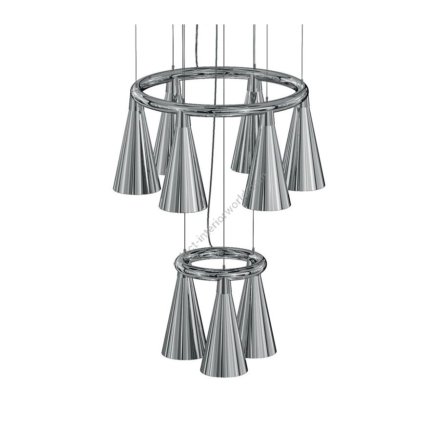 Chandelier with chrome brass structure and chrome lacquered blown glass (ip20).