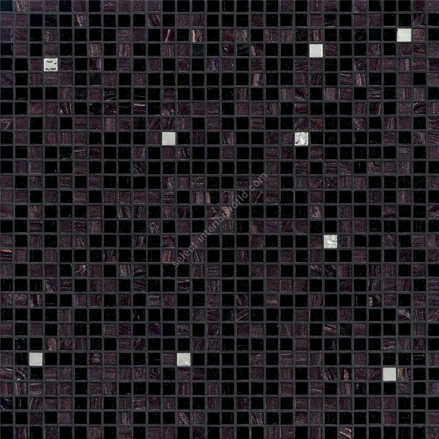 Glass mosaic composed of beveled, randomly arranged square tesserae. The oro bis tesserae present in the blend are fashioned with silver and gold leaf between two protective layers of glass. When used in swimming pools and damp environments, platino must be used in place of oro bis bianco.