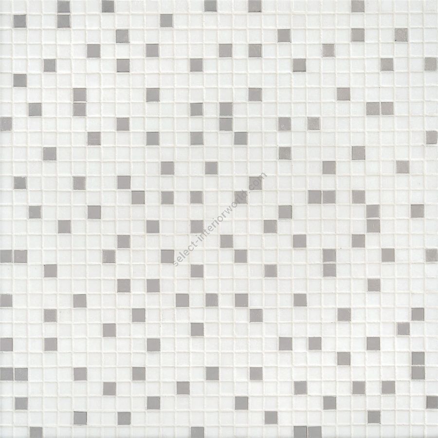 Glass mosaic composed of beveled, randomly arranged square tesserae. The oro bis tesserae present in the blend are fashioned with silver and gold leaf between two protective layers of glass. When used in swimming pools and damp environments, platino must be used in place of oro bis bianco.