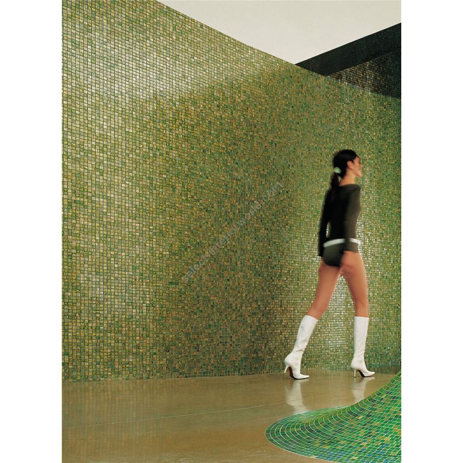 The le gemme series is fashioned using artisan techniques and expert hand-craftsmanship that make each tessera unique, luxurious and one-of-a-kind. The individuality of this series derives from the special glass-coloring technique that includes the addition of aventurine and colored enamel granules. Aventurine is a type of glass obtained through artisan craftsmanship, a technique passed down by the murano glass masters for centuries. Copper crystals mixed with brilliant metal oxides are found inside aventurine where they create a golden scintillating flamed effect in the mosaic tesserae. Also available in the matt version, with opaque and slip resistant finish.