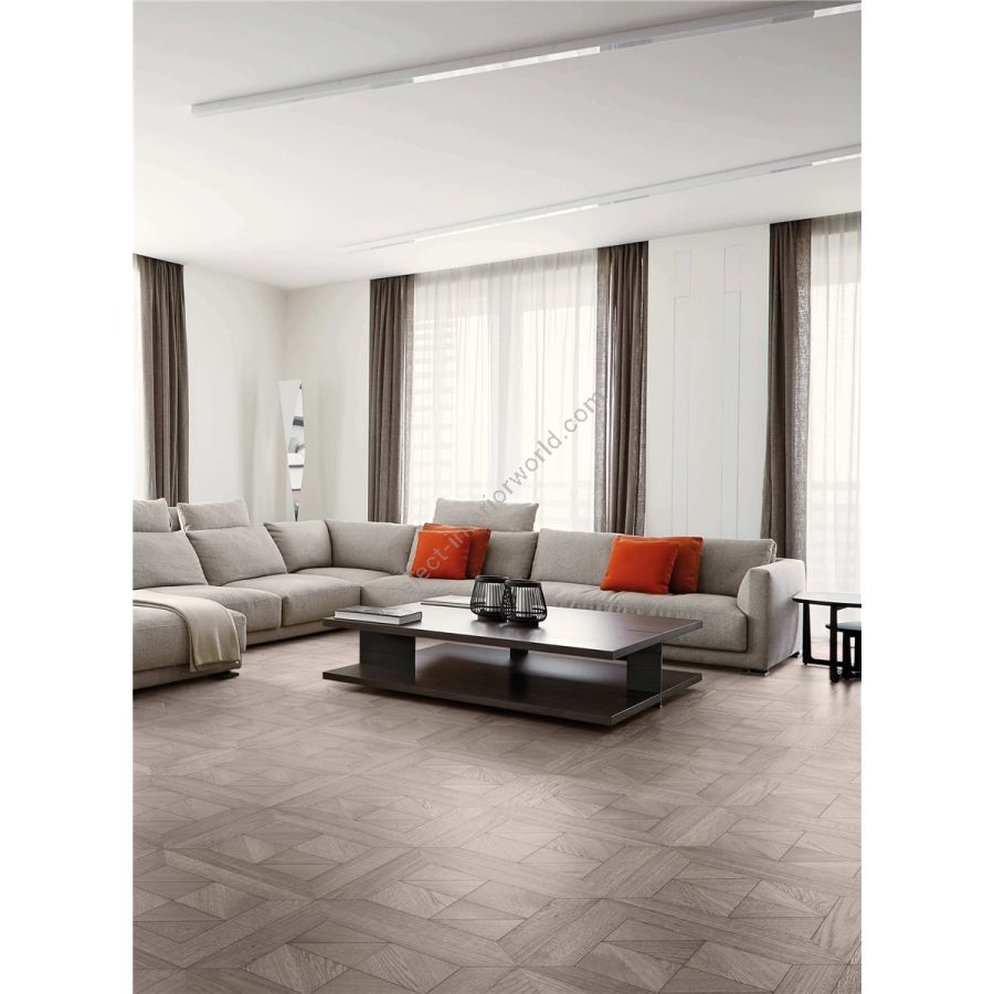 Wood is a prefinished 15mm thick parquet consisting of a 4-mm-thick top layer of oak on a birch plywood backing, assembled according to the strictest production standards. Wood has excellent wear and stability results and can be laid on floors with radiant heating. The surface is brushed and finished with a varnish, which makes this product extremely resistant to stains and suitable for high-traffic floors. Wood is fire retardant, being approved to european fire reaction class cfl-s1, and meets the requirements dictated by the ce marking regulations for wood floors. Minimum order quantity: 30 sqm