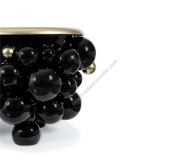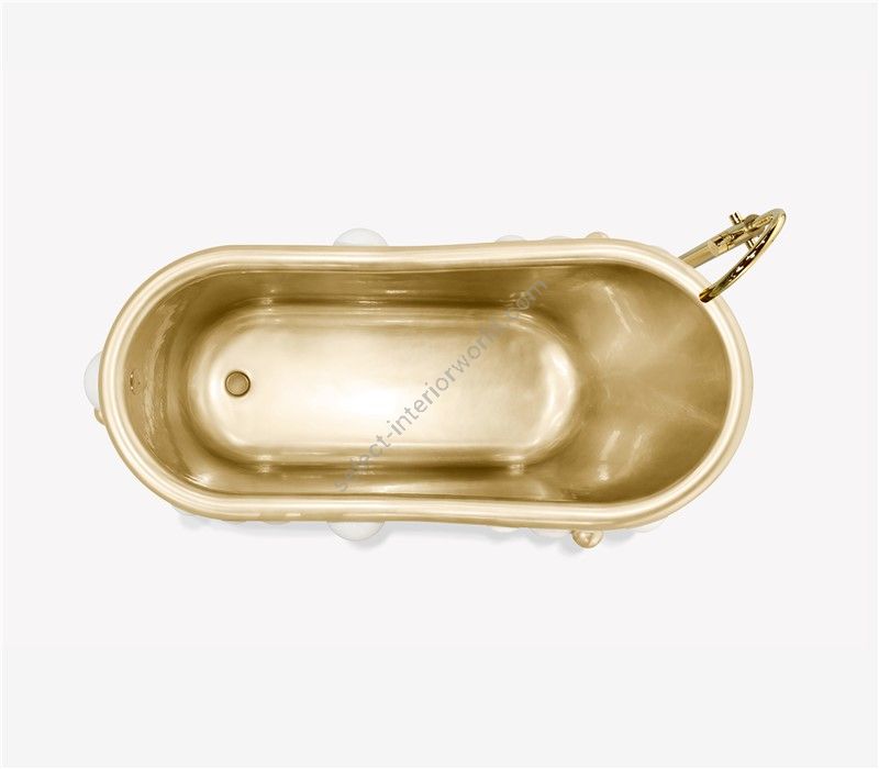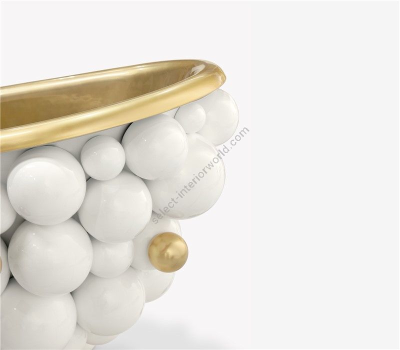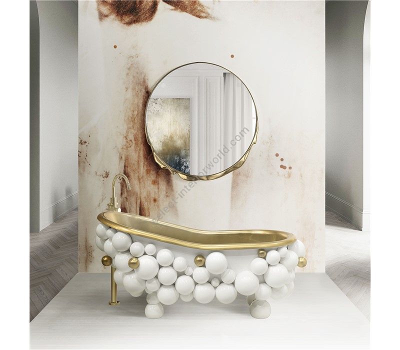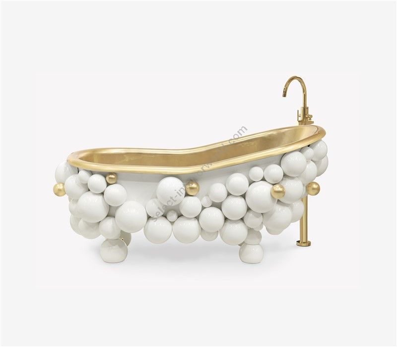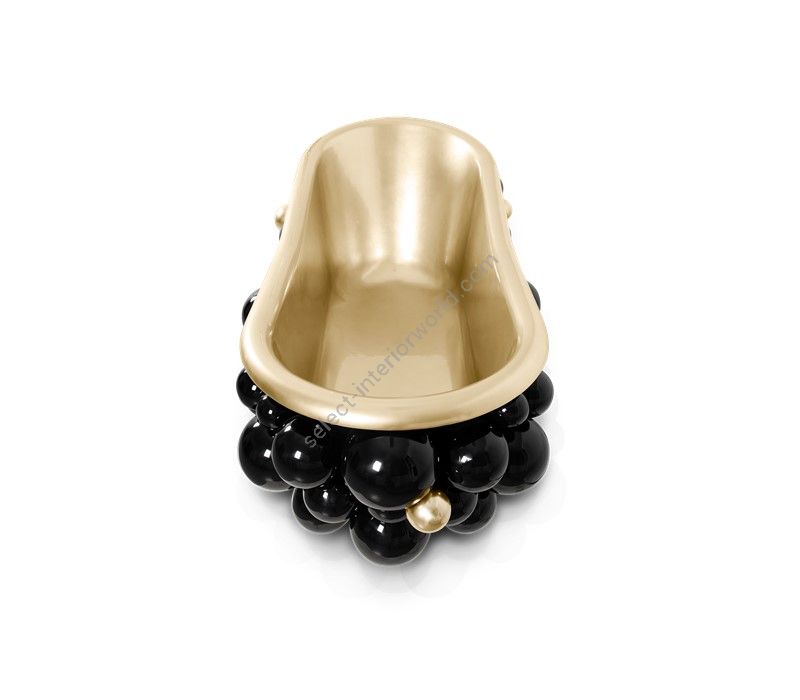 Newton is an outstanding moment of design inspiration. This bathtub features a curved lip style shape, a timeless detail that conveys comfort, made out of gold-painted casted iron, revealing its entire golden interior. The high-gloss black and gold lacquered spheres make the perfect combination to make this a sculptural and artistic piece that will enhance your new Master Bathroom Design.
