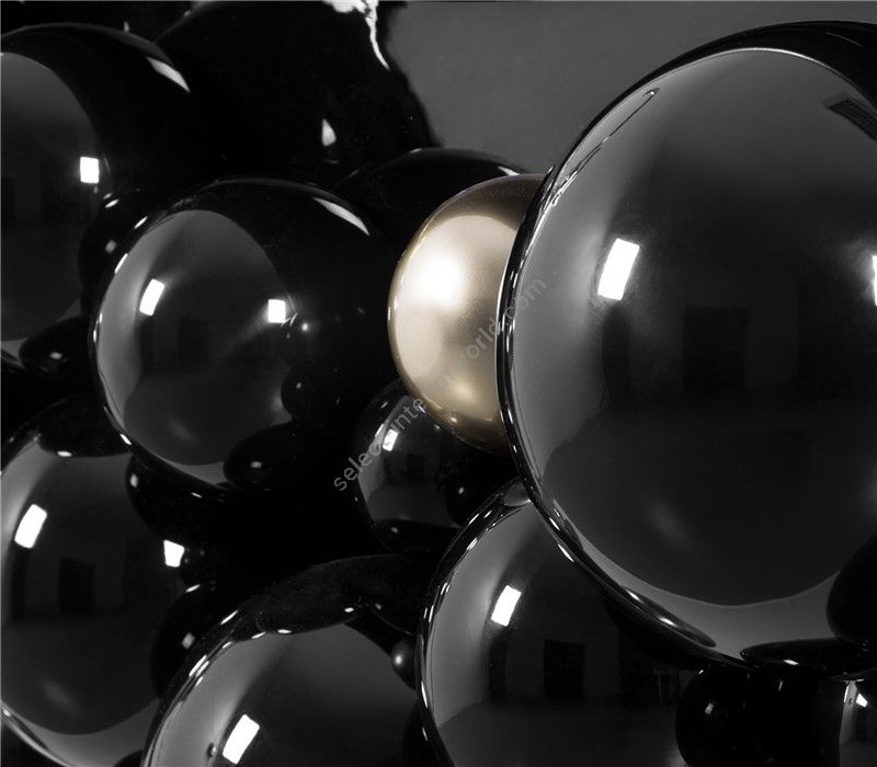 Black lacquer brass spheres with high gloss varnish finishing and some gold plated spheres on the base.