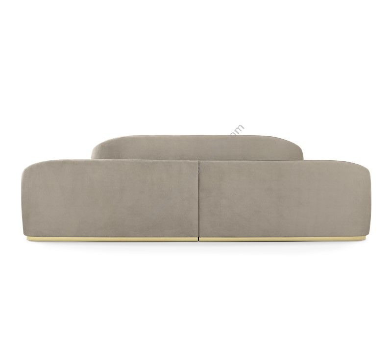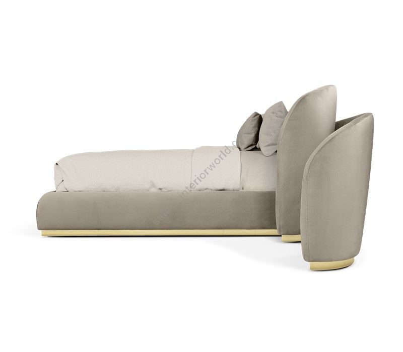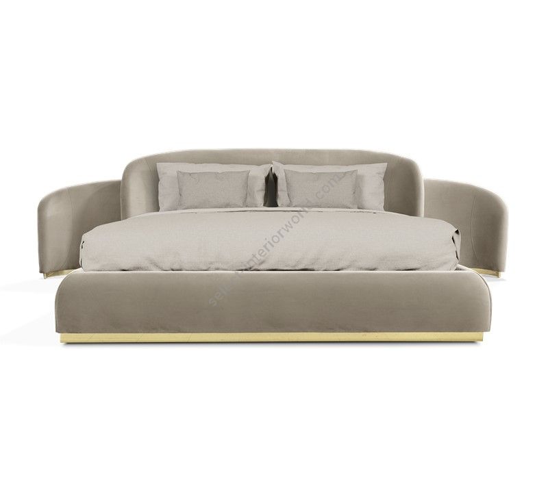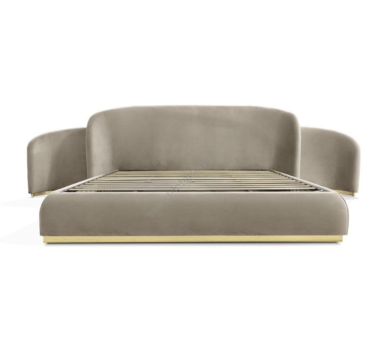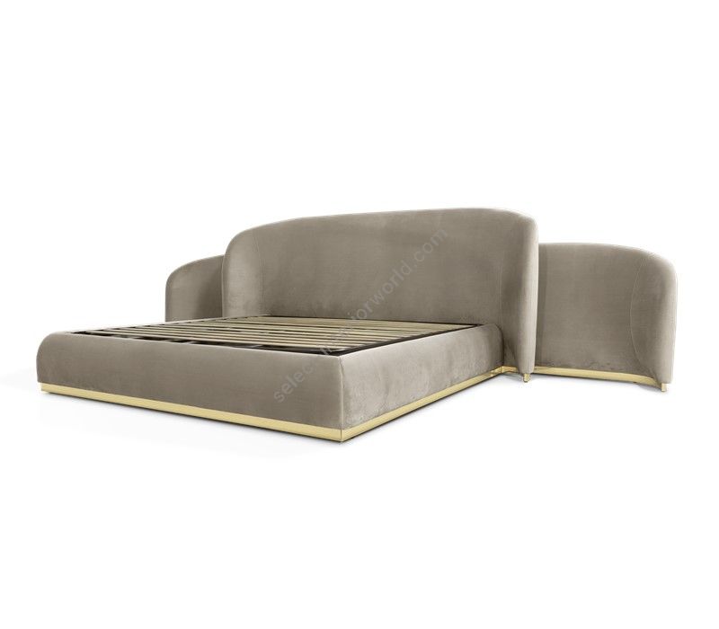 Wood structure with polished brass details, upholstered in velvet with foam inside. Side parts can be extended up to 50 cm on each side. The structure allows the placement of an electrical outlet on the sides. Elevator platform applied.