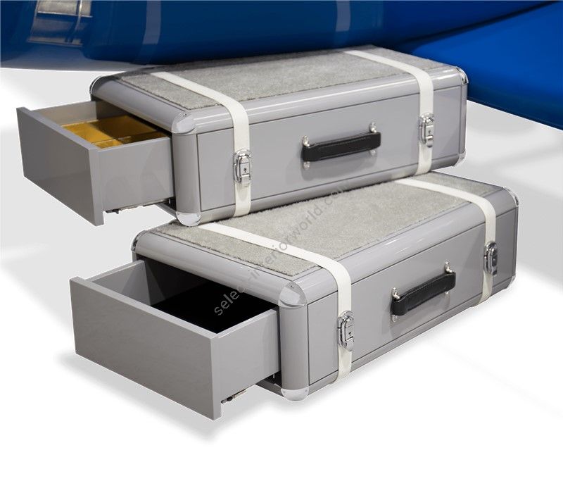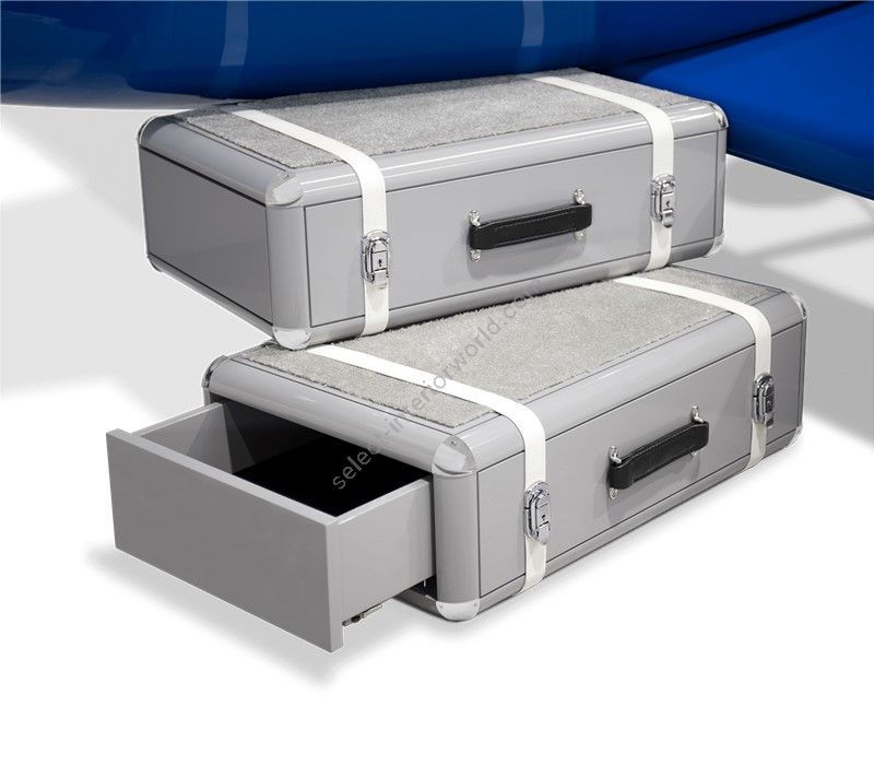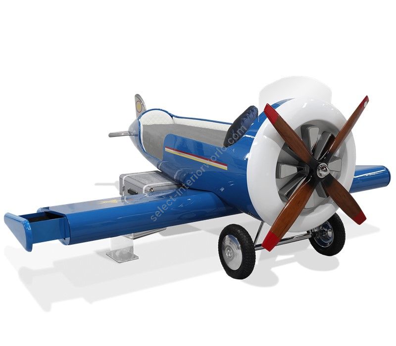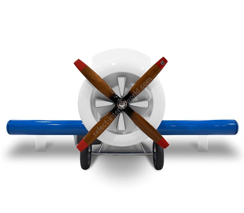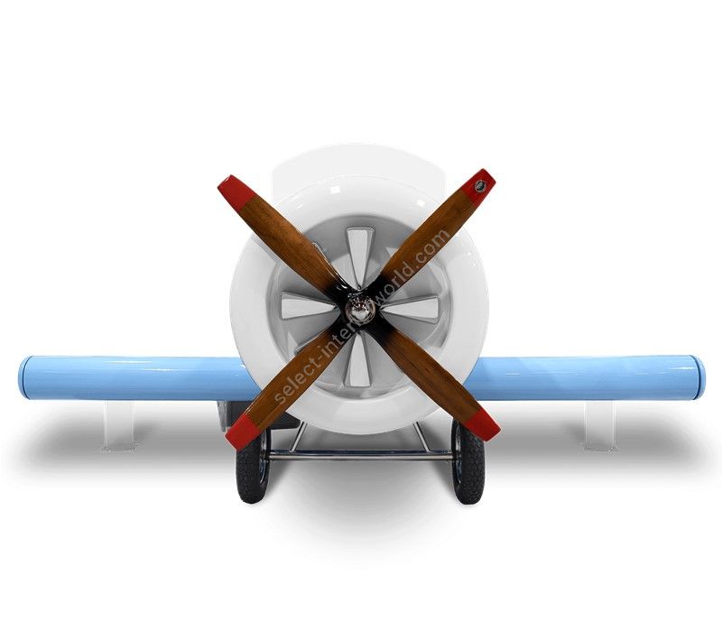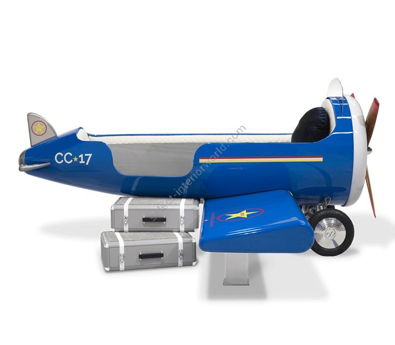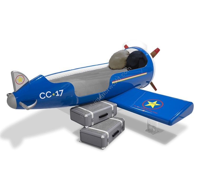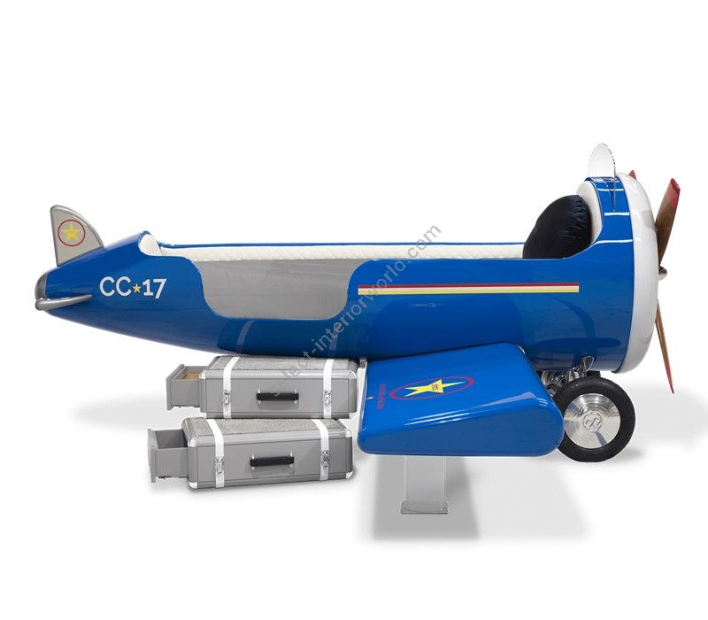 The Sky One Plane is an airplane-themed kids' bed with a playful design that it’s both didactic and fun. An airplane inspired decoration for kids’ rooms is perfect to encourage the little explorers to develop their creativity. The body is entirely made of fiberglass with glossy varnish applied and chrome plated finishes in the engine and wheels. The decorative suitcases include secret storage compartments and allow easy access to the bed. The Sky One Plane makes the crib-to-bed transition as painless as possible.