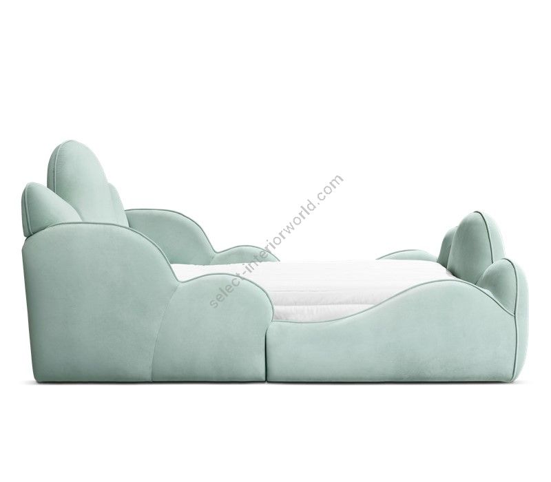 Inspired by the movie Atlantics, this one of a kind bed was made to shape comfort and to keep your little one's dreams safe and sound while he/she travels through their imagination at night. Made with the finest materials such as wood and soft velvet, the Tristen Bed is a kingdom ready to take a place in your bedroom project and your kid's life.