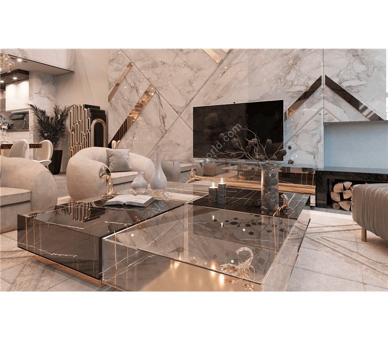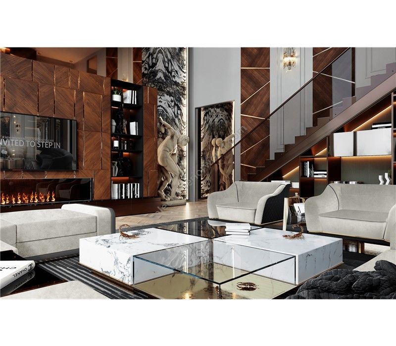 The enormous success of the Metamorphosis Series gave birth yet to another unique creation – Metamorphosis Center Table. Similar to the dramatic transformation and the sudden change in the animal's body structure, Metamorphosis Coffee Table experiences new unexpected design techniques, noble finishes through a meticulous artistic process. The coffee table is composed of two fragments, finished in mirror and noble marble and beautified by the presence of golden creatures that are prepared for their ultimate metamorphosis.