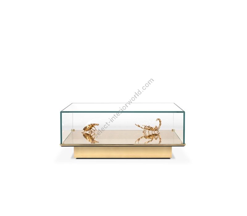 Table 1: Gold Plated Brass, Glass. Decorative elements: 1x Pollock Beatle 2x Scorpion - Gold Plated Brass.