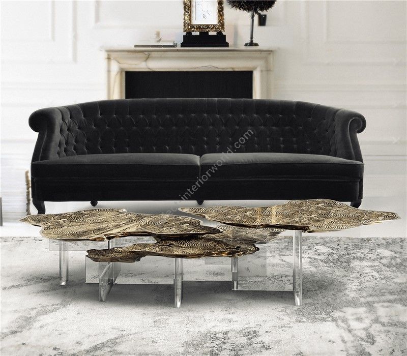 Monet is a tribute to the renowned French painter behind the Impressionism movement, and artwork that turns into a contemporary coffee table with a modern design twist. Innovatively depicting nature, the Water Lillies series are gently brought to life in an elegant coffee table with a gold surface made from cast brass with a unique textured finish. Featuring both contrasting shapes and materials, as the unconventional compositions of the artist, the contemporary coffee table is supported by a geometric acrylic base, allowing to capture natural light. An immersive exceptional object, the Monet coffee table is perfect for cutting-edge living rooms.