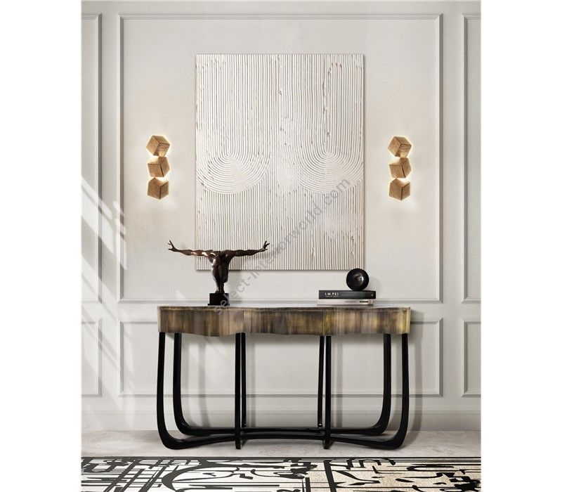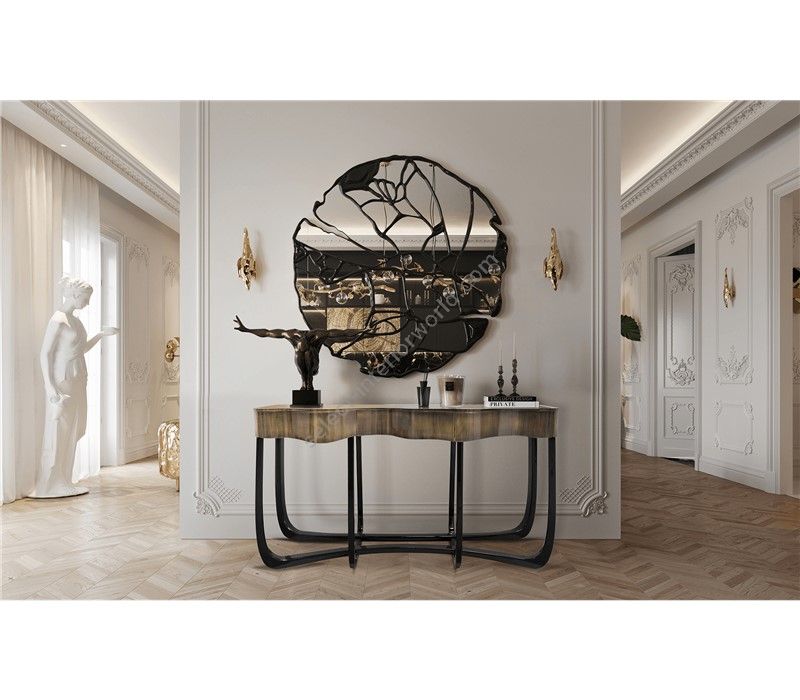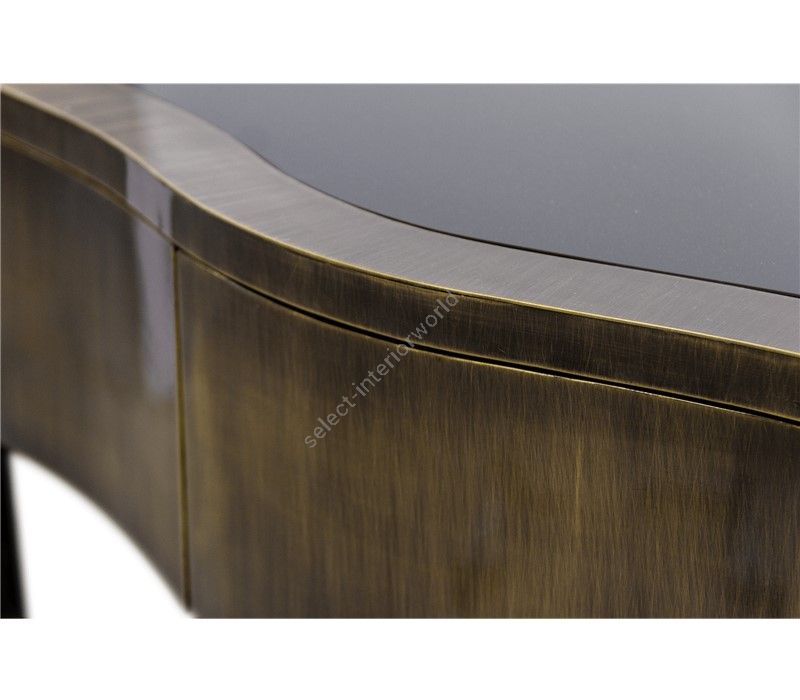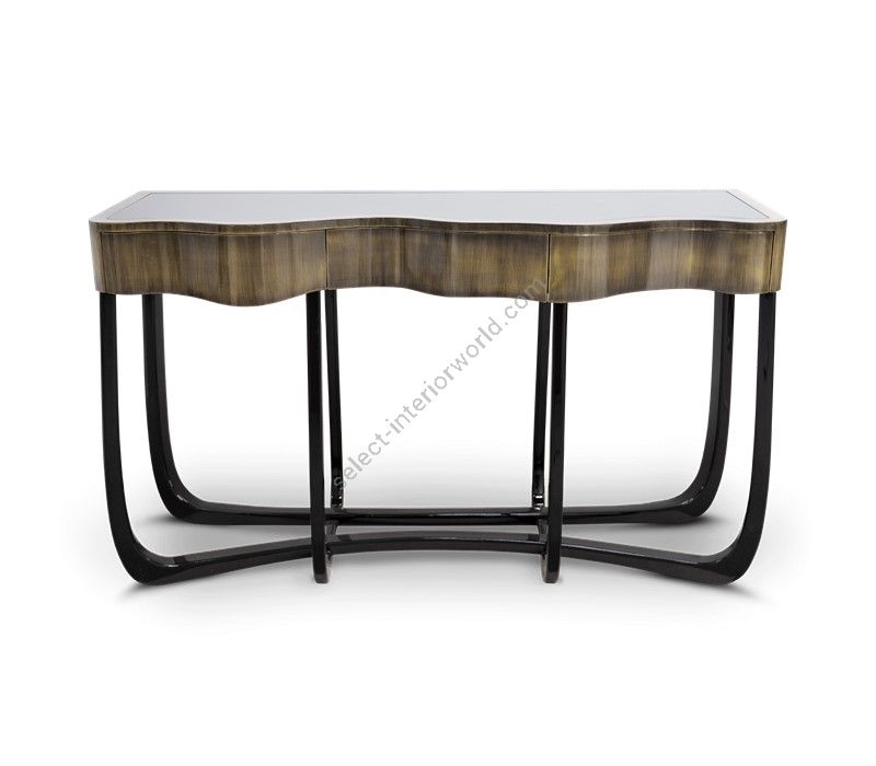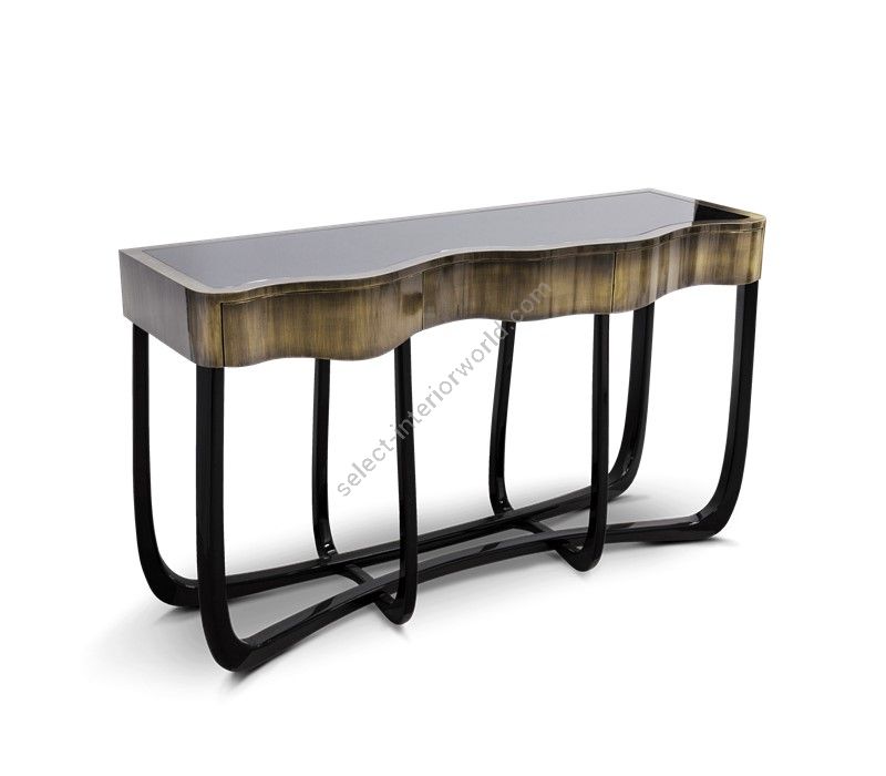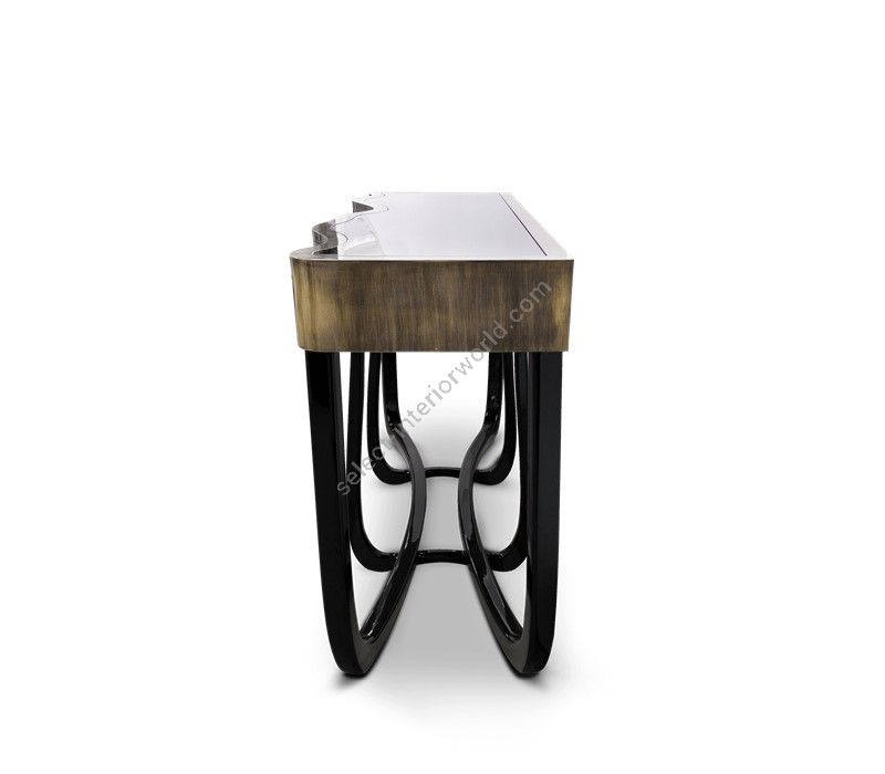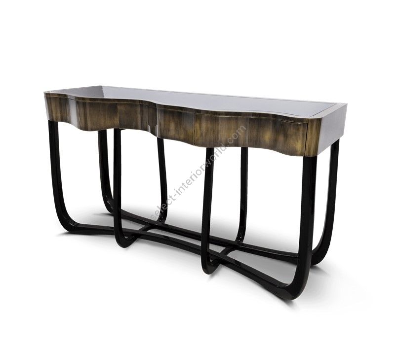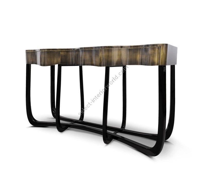 With Sinuous Patina Console you will successfully create a luxurious environment. Sinuous is made for those who love harmonious lines mixed with exquisite detail. Its design is seductive and lures you into a magical and golden world. To achieve extravagance, Boca do Lobo’s artisans handcrafted the structure in mahogany with a high gloss black lacquer finish and top coated in polished brass plated, bringing up the vivid and bright side of Boca do Lobo. This luxury furniture design contains three drawers, adding function to the unique piece.