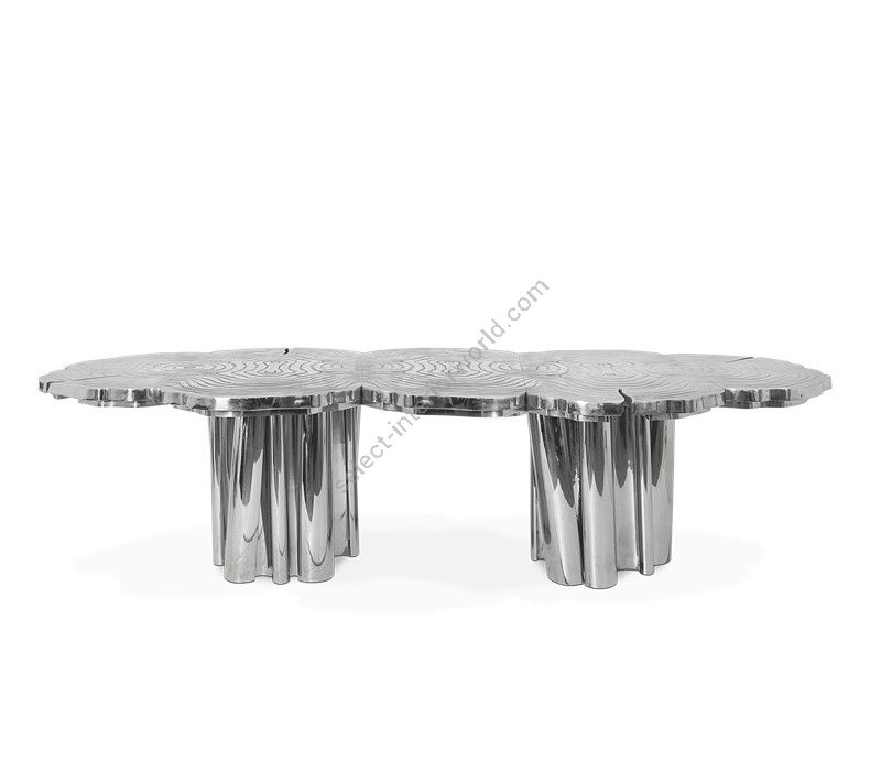 Fortuna is a contemporary dining table with one-of-a-kind design aesthetic and refined statement to the most influential minds. Representing the essence of empowerment, sophistication, and mystics, the Fortuna features an exclusive stainless steel surface for ground-breaking dining rooms.