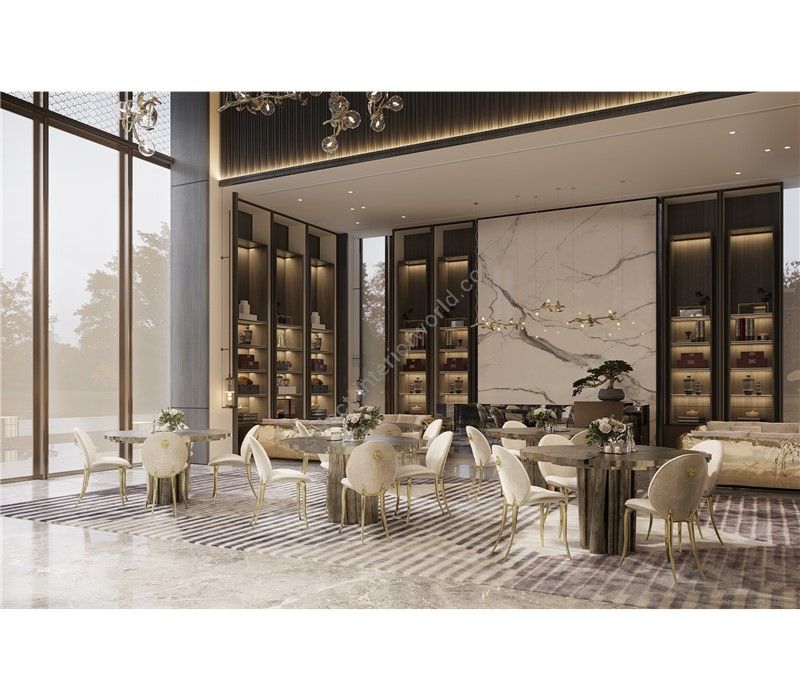 Fortuna is a contemporary dining table with one-of-a-kind design aesthetic and refined statement to the most influential minds. Representing the essence of empowerment, sophistication, and mystics, the Fortuna features an exclusive polished brass patina surface for ground-breaking dining rooms.