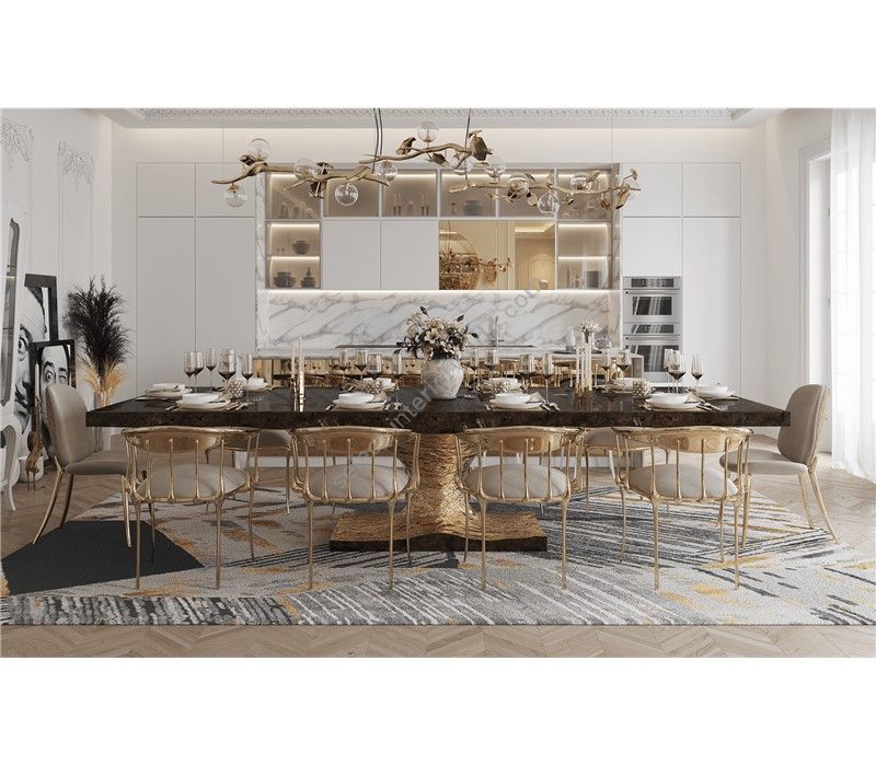 After the huge success of Metamorphosis Series, Boca do Lobo creates Metamorphosis Dining Table in order to strengthen this unique concept. This luxury dining table has come to symbolize the evolutionary history of life, representing the last stage of the cycle through the usage of sculpted fossils on display at the top of the table. It also represents the effort made by our designers to questioning the existence of things, by answering a simple question: 'How can we define something as living?' According to Boca do Lobo's quality signature, Metamorphosis Dining Table embodies handmade techniques such as wood carving, metal cutting and hammering, and polishing, executed by some of the best craftsman in the country. A unique product for those who have a peculiar taste for limited edition pieces and conceptual designs.