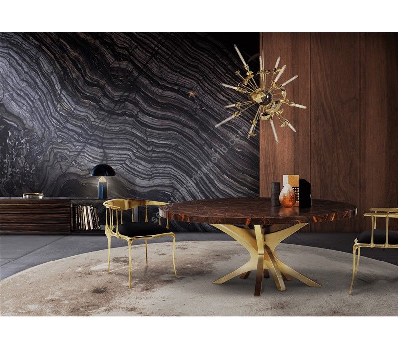 Boca do Lobo’s exclusive Patch Table has intricate wood veneer top and sculptural base for adding sophistication to any kind of home setting. Patch table fits on a contemporary living room or on a sophisticated kitchen. The top of this dining table is covered with an intriguing geometric mosaic of wood veneer and the base is made from oak. This round center table is then finished in high gloss varnish. It is 76 cm high and 160 long, perfectly crafted with the uniquely legged bottom matching any kind of home or flooring aesthetics.