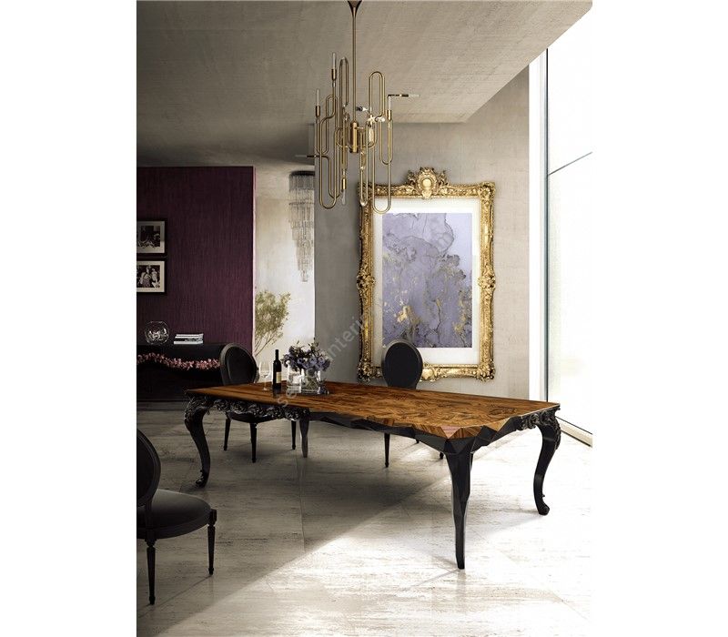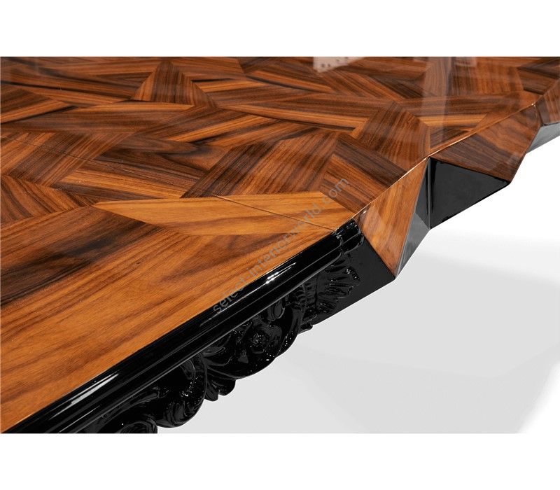 The Royal is a real step forward for Boca do Lobo. It's hand carved details of the intricate marquetry design and finishes, are executed with amazing precision by our artisans. Made from wood, each of it's details are executed with precision, from it's frame in a baroque and minimalist faceted style, to it's unique table top, in a palisander veneer patchwork collage, finished with a high gloss varnish. This extraordinary piece combines new design and architecture trends, but never forgetting the rich tradition of the past. The dual personality of this table is beautifully combined, Baroque meets clean lines, while reflecting Boca do Lobo’s philosophy of challenging the past through the future.