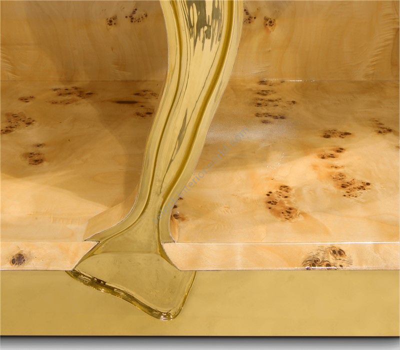 Brass, wood veneer, lacquer, high gloss varnish, glass.