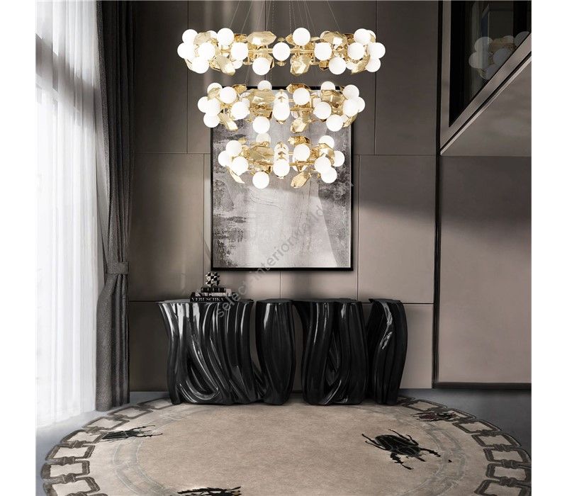 As the Queen of the Greek Gods, Mother of Nature and the embodiment of Honour and Maternity, Hera represents the blossom of a golden new era full of life and inspiring beauty. Defined by strong and emotional paths filled with intricate details, this mythological entity is the magical inspiration behind this lighting piece.