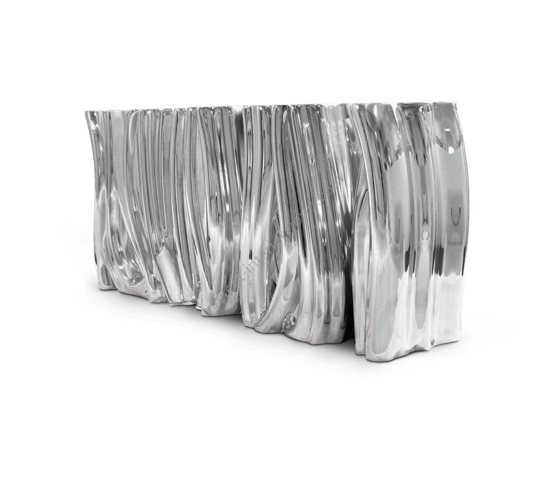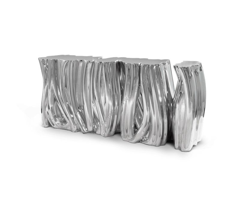 Carefully built from resin, the Monochrome is composed by three separate modules, covered by an exquisite silver finish with a black gradient hint as result of advanced experimentations, and finished with a high gloss varnish coat. An avant-garde console that conveys a seductive and fearless attitude due to its unique and challenging design.