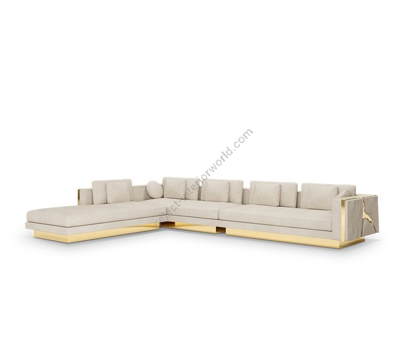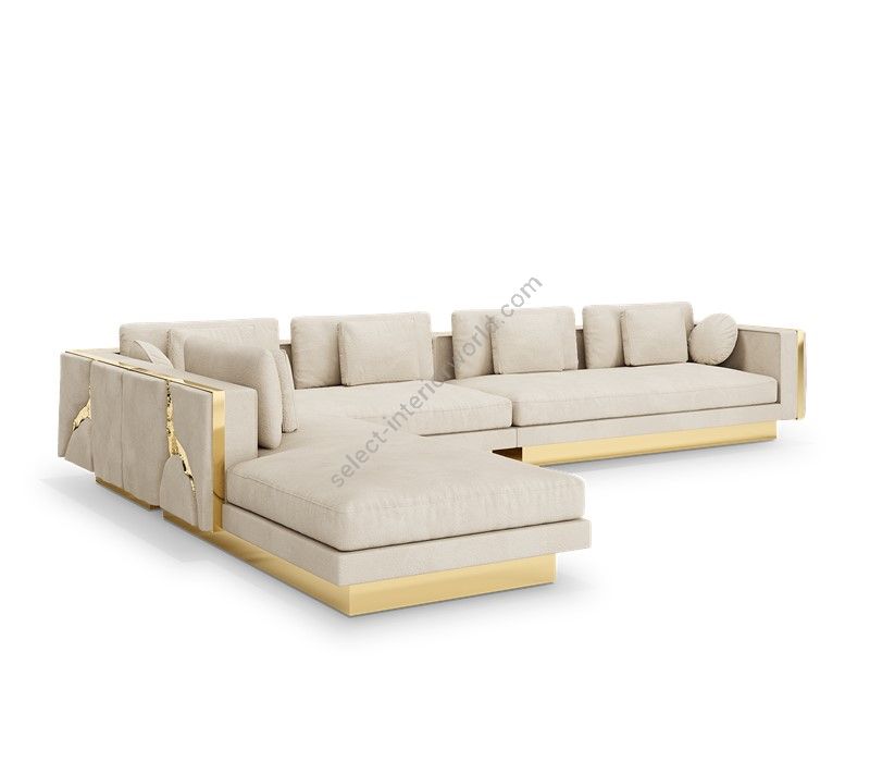 This unique Modular Sofa takes craftsmanship and design to a new dimension. This contemporary design piece is inspired by authentic karst formations. Finding beauty in the most unexpected places, this modular sofa's design showcases some high-end and creative features that are achieved through manual fitting and a combination of polished brass with fabric. A functional artwork piece born from cold and freshly cracked to show off the world its rich, golden, and impressive details. The perfect sofa for a contemporary living room.