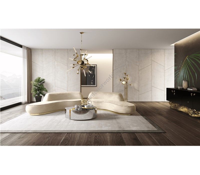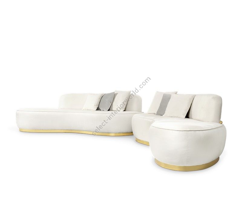 Inspired by the Swan Lake Op. 20, ballet composed by Pyotr Ilyich Tchaikovsky, Odette Modern Sofa tells the story of a princess turned into a swan by an evil sorcerer's curse. Its sweeping silhouette is accentuated with a polished brass structure and an asymmetric back that offers a sophisticated design and timeless appeal.
