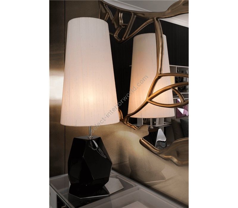 Feel is a table lamp, but actually, it can also be a modern bedside table lamp. It can be elegantly used in your living room as sophisticatedly in your bedroom. Handcrafted by Boca do Lobo, Feel is an exclusive lamp covered with silver leaf, the shade is silk and the base is polished stainless steel. Feel lamps allude to mineral forms and natural materials to produce sculptural pieces. Highly decorative, Feel’s lamps base is available in emerald, lapis, amethyst or citrine.