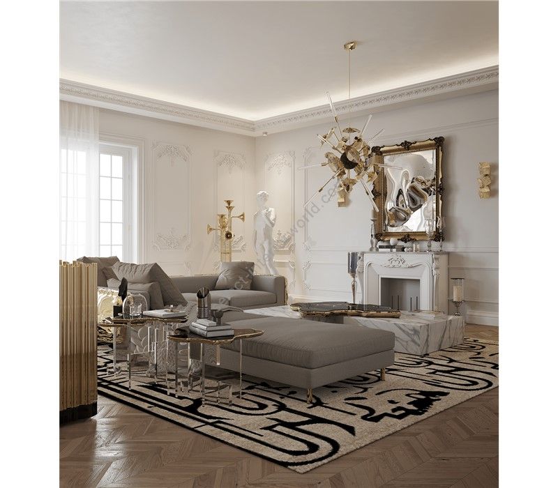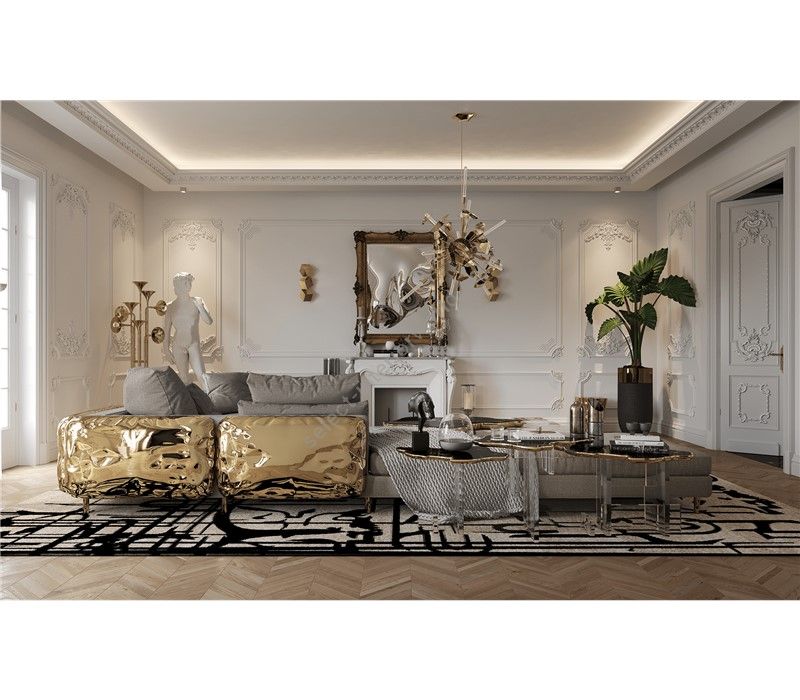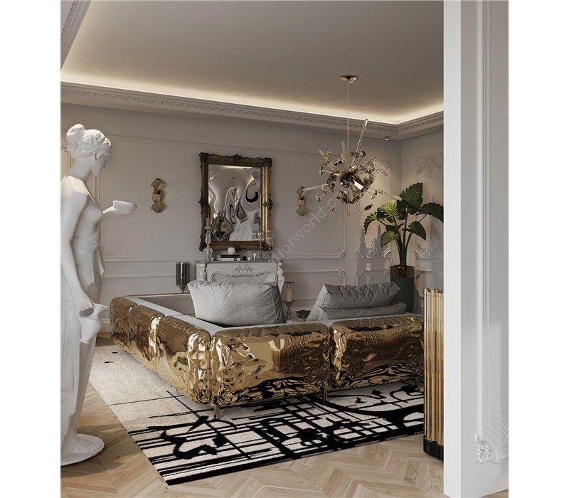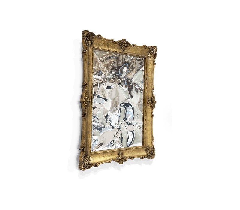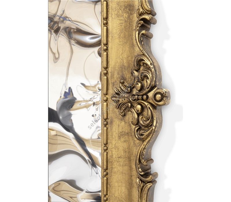 The D.Dinis luxury big mirror embodies the classic Parisian style in its golden detailed frame while capturing glimpses of irreverent and modern features on the surface. A distorting clear mirror bursts for unexpected juxtaposition.