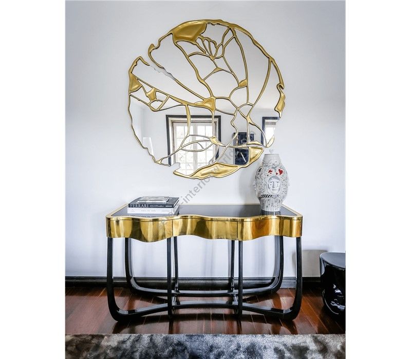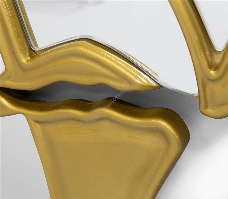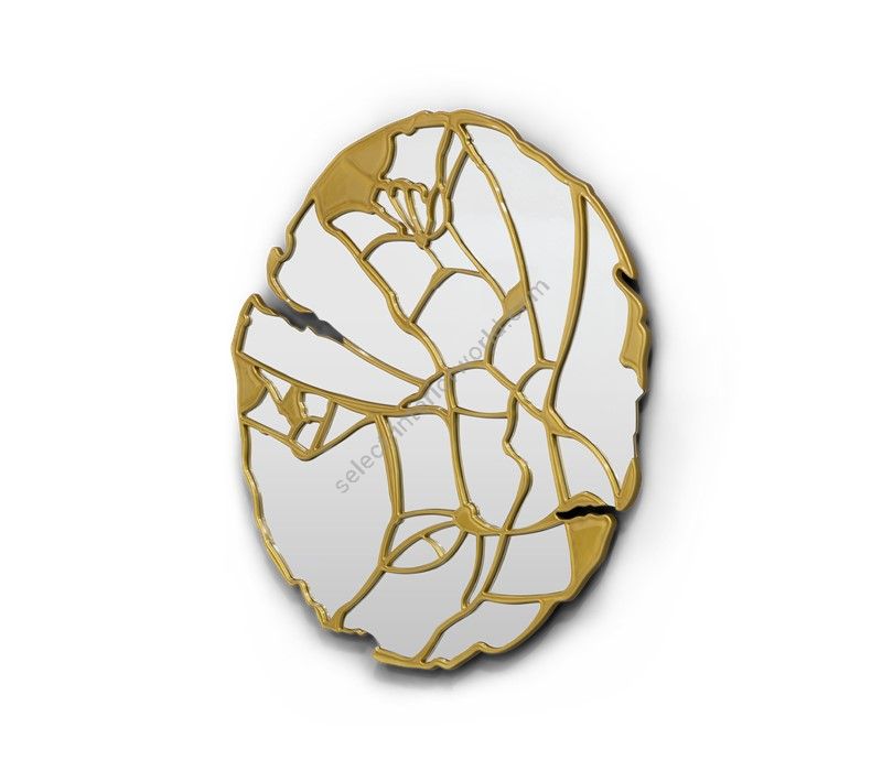 With order being the pleasure of the reason, the disorder is the delight of emotions. What seems confused and cluttered can, in a glance, acquire a new meaning capable of inspiring and becharming us. The Glance Mirror tells a story about the crossroads of life and the reason for the chaos. The concept of a defragmented statement mirror brings out its noblest gold backdrop meticulously handcrafted from the most skilled goldsmiths. A contemporary wall mirror with a gold accent for contemporary interiors and elegant rooms. From stylish bedrooms to upscale halls or living rooms. The unique beauty of this round mirror comes from daring to risk and challenge conventional design through the finest craftsmanship.