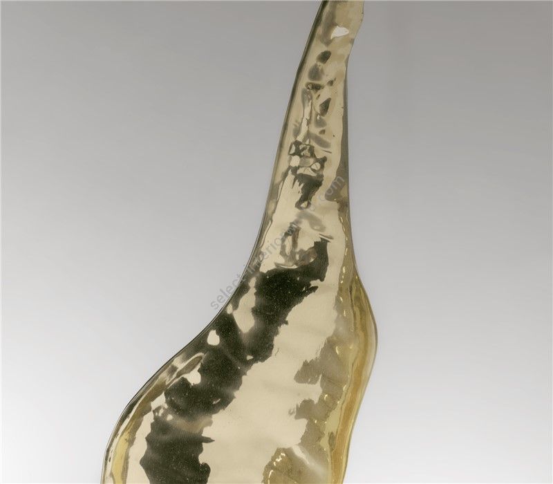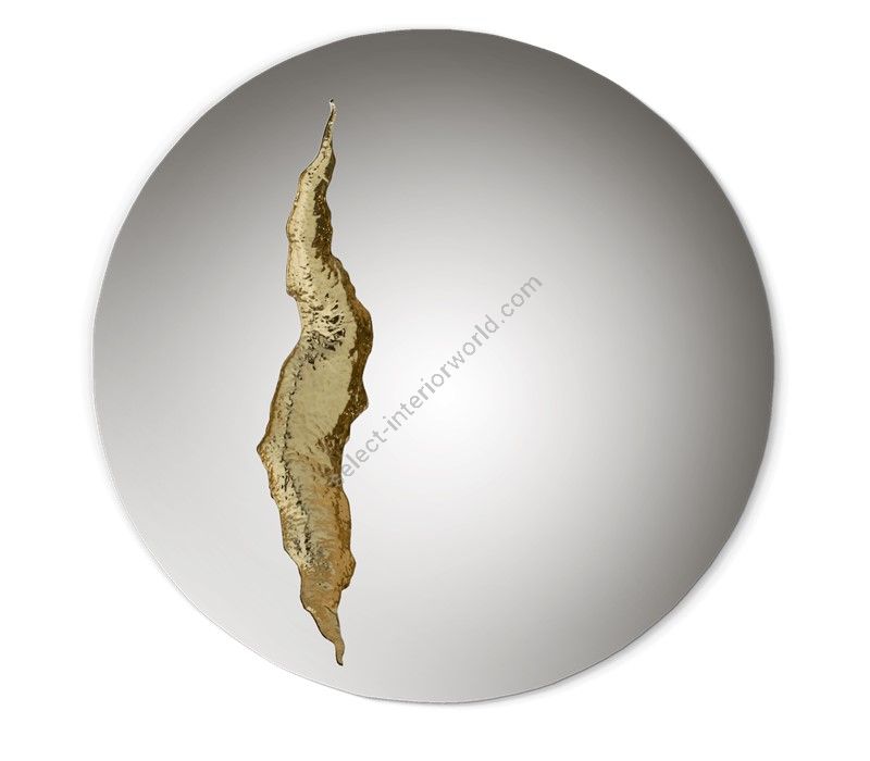 The organic features of this large mirror are achieved through the manual fitting of golden polished brass, finishes in polished stainless steel. The hammered gold details and the mirrored façade conveys a beautiful duality between power and refinement to bring a new contemporary verve into interior design. A functional artwork piece born from cold and freshly cracked to showing off the world rich, golden details.