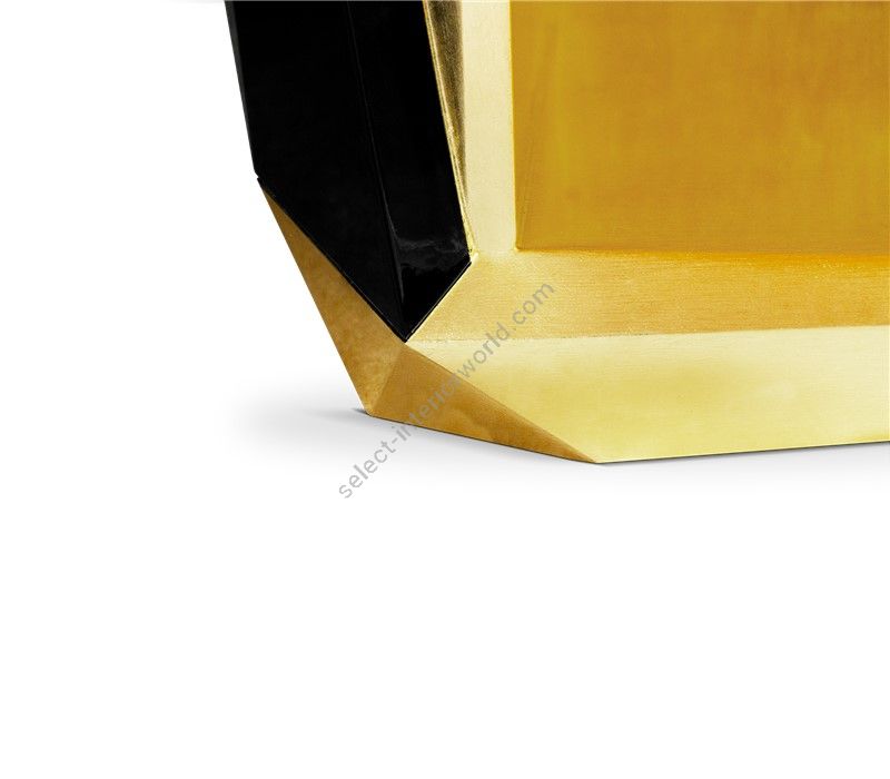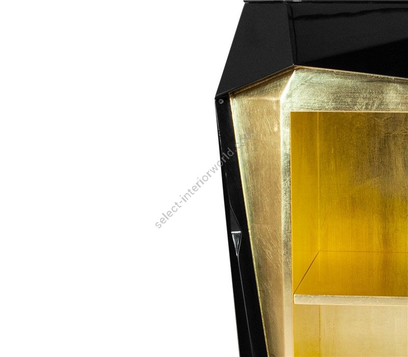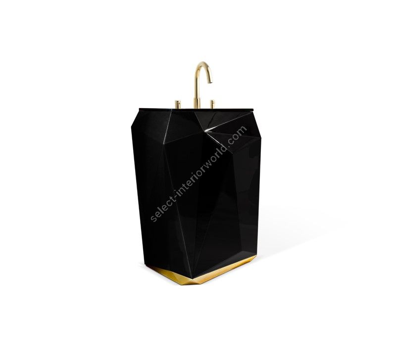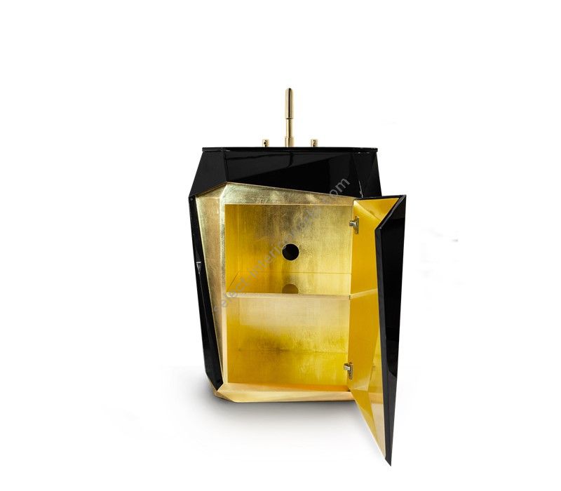 Structure: Wood; Outside: Black lacquered, High gloss varnish; Base/Inside: Gold leaf; Sink/Cover: Black lacquered glass; Water drainage: Wall