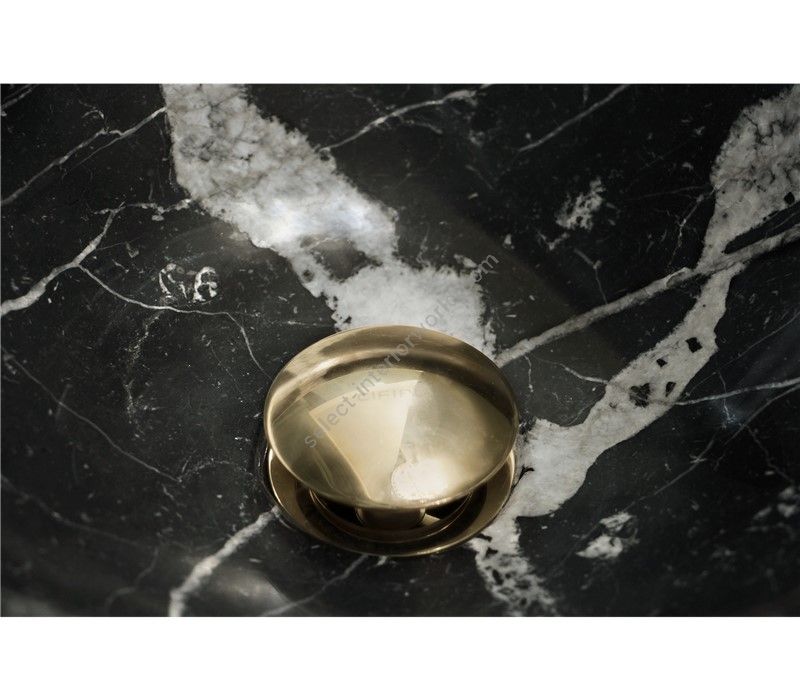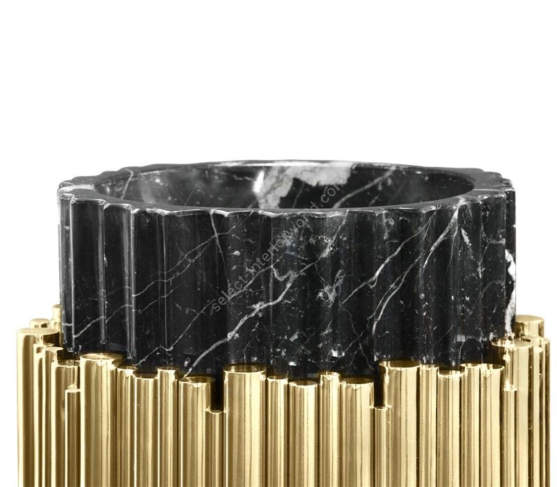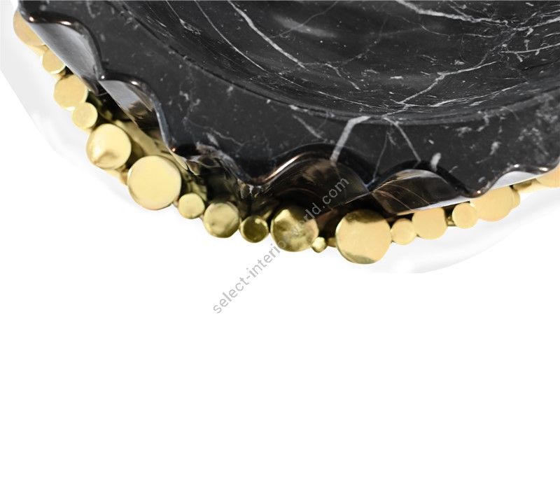 Structure: High Gloss black lacquered Wood | Gold plated brass tubes, High gloss varnish; Sink: Nero Marquina Marble; Water drainage: Floor