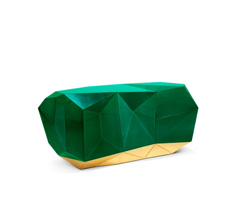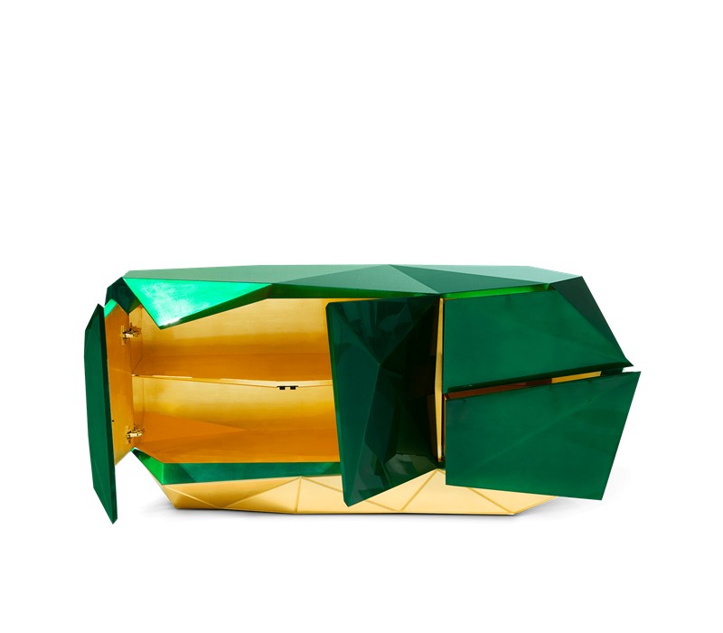 Time honoured masterpiece, the faceted Diamond sideboard is born as a precious emerald jewel with cutting-edge lines to challenge the boundaries of form.
