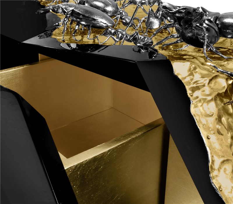 A new take on one of Boca do Lobo's most iconic pieces, the Diamond undergoes a process of Metamorphosis and enters a new aesthetic realm. The merging of metamorphosis as an evolutionary process, commonly associated with insects, with the philosophical conotation of the word that originates from Kafka's prime work, the Diamond Metamorphosis Sideboard questions the meaning of beauty and seeks to provoke a reaction.