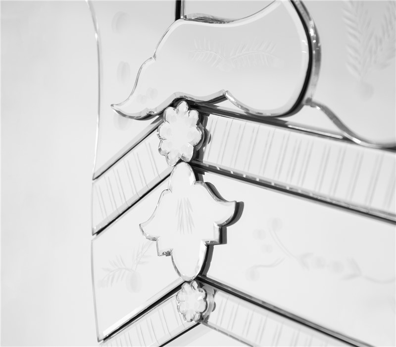 Inspired by Venetian Mirrors, each piece that compose the Venice was manually and individually beveled, and fitted onto a wooden structure.