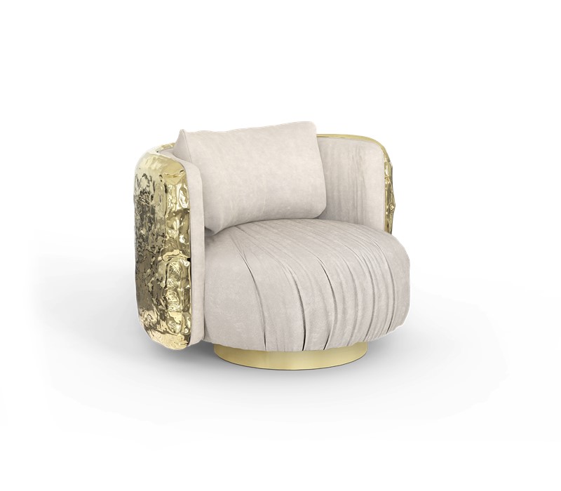 The sumptuous Imperfectio Armchair is the expression of imperfect aesthetic and the appeal of authentic art that is truer to life. An accent armchair that praises artisanal work as the ultimate form of art that is quite intentionally imperfect. Through its unique existence and shapes, the modern and round armchair determines its history. The irregularities and flaws over the manual hammered brass expose the beauty of imperfection. Some parts are roughly asymmetrical at the surface yet comfortable and smooth in a peculiar way to excite a desire for complementing your living room.