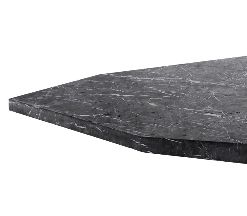 Table produced in fiberglass filled with expandable polyurethane. handpainted faux-marble, with an irregular surface finish and a unique faceted form.