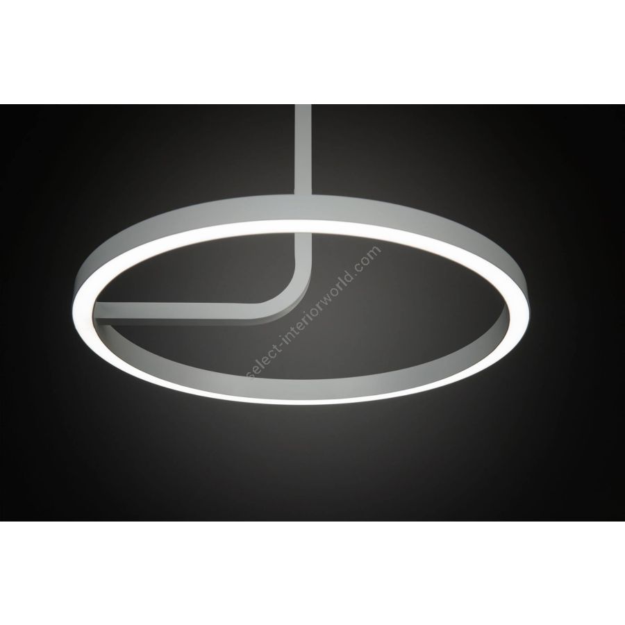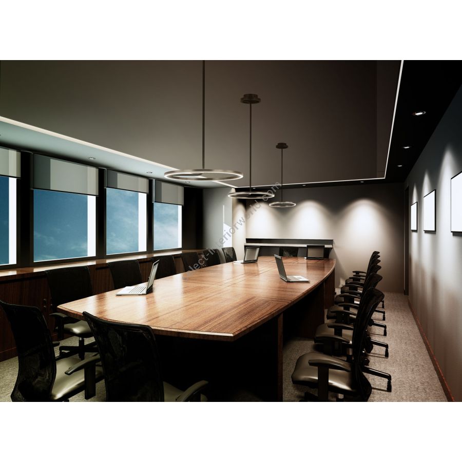 Hoopla was inspired by requests from architects and lighting designers for “non-fixture fixtures” that do not clutter spare spaces or compete with restrained interiors. One sinuous stem built of a scant, 7/8” powder coated aluminum channel starts at the canopy and drops to form a lit “hoop” in 16” and 24” diameters. Designed for performance, it uses up to 36 watts of power at 2700°k and 90 CRI, making it perfect for any office environment.