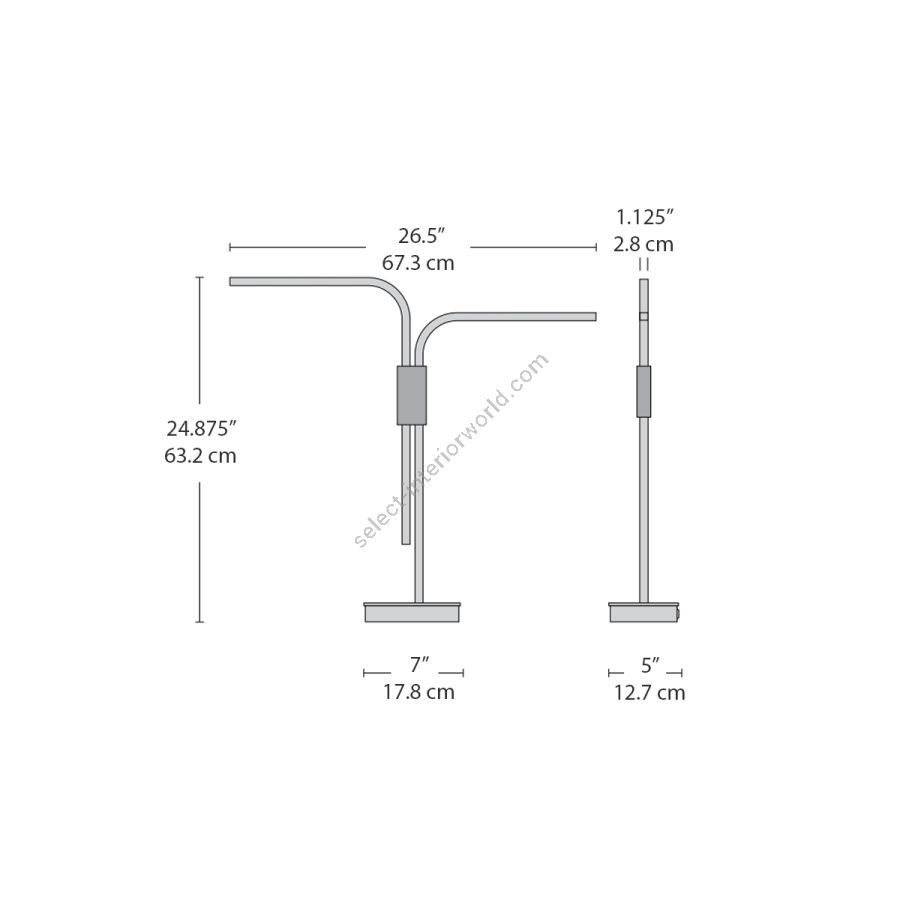 The swing-arm table version of the Branch Series offers multi-directional illumination with a stationary bottom arm and a top arm that rotates 180°. On/Off switch on base. Diffuser in satin white silicone.
