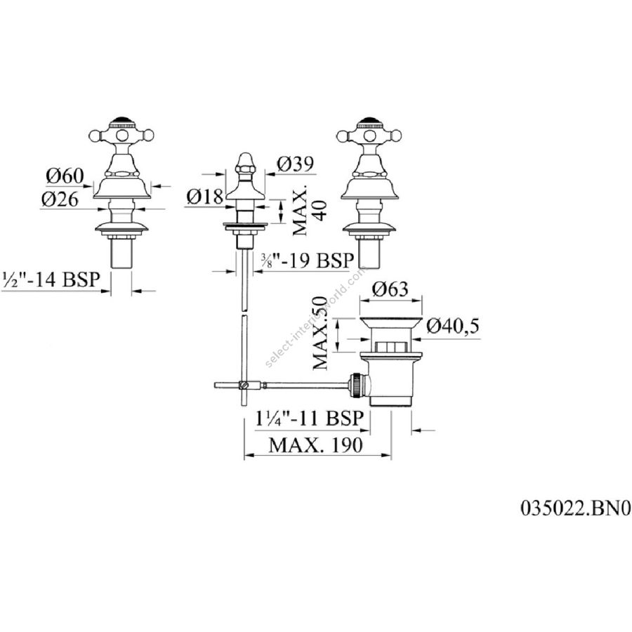 Bronces Mestre / Washbasin Fittings / Three holes basin set 035001.000.50