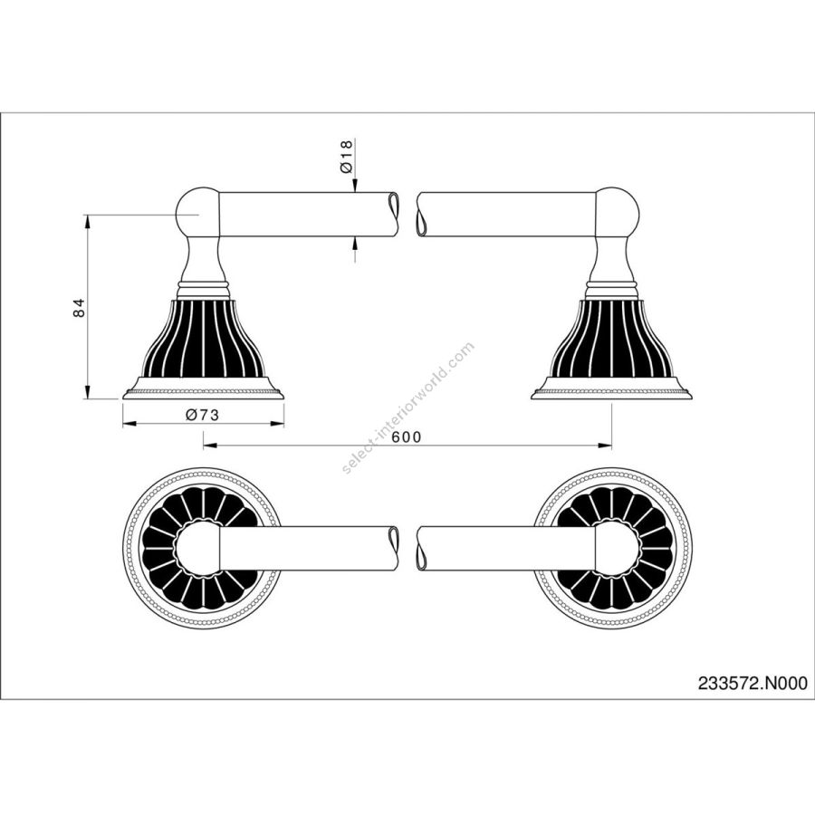 - Bronces Mestre / Towel Holders / Towel rail 600mm with black porcelain 233572.N000.50