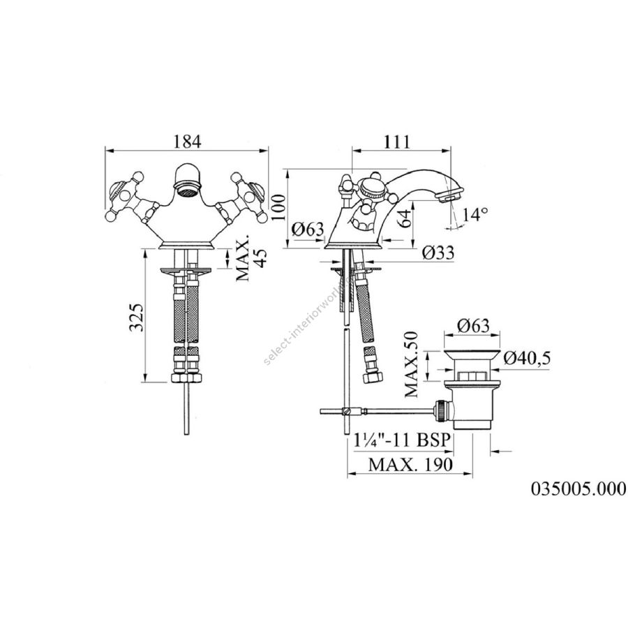Bronces Mestre / Washbasin Fittings / Three holes basin set 035001.000.50