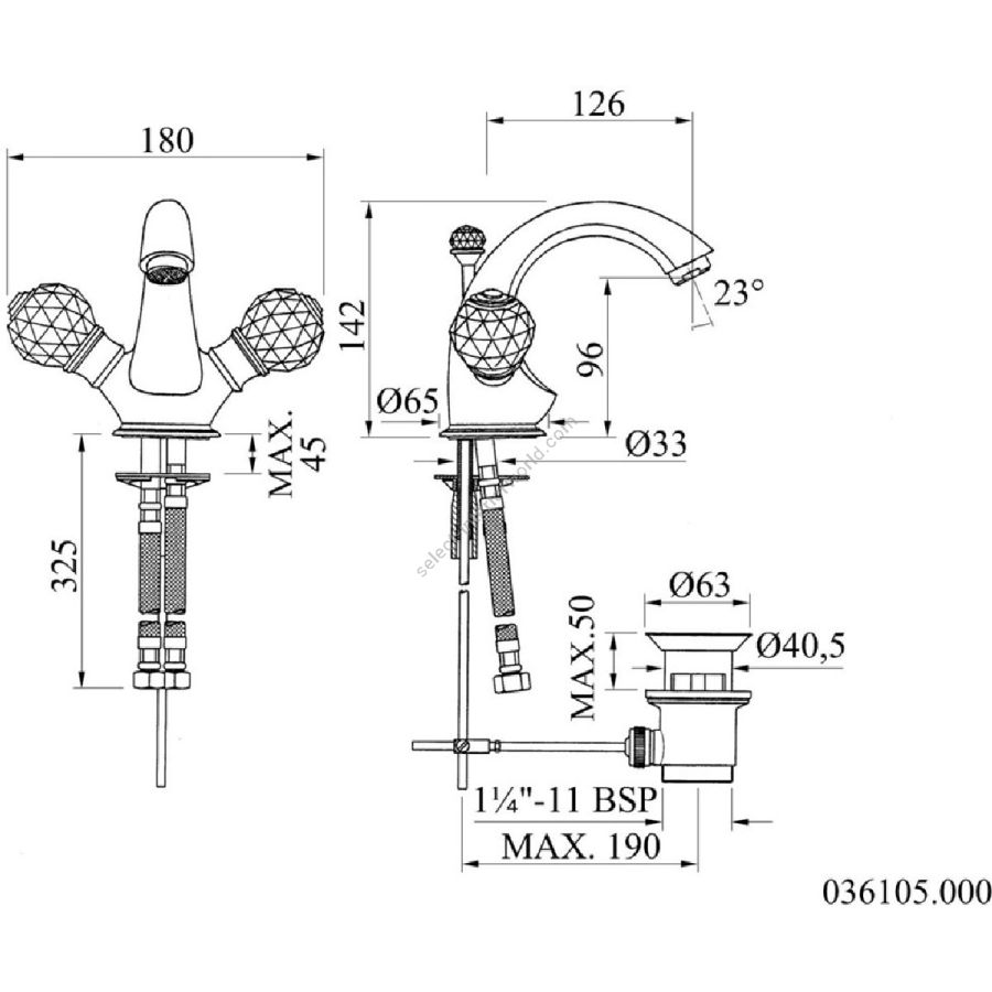 Bronces Mestre / Washbasin Fittings / Three holes wall basin set 033433.C00.50